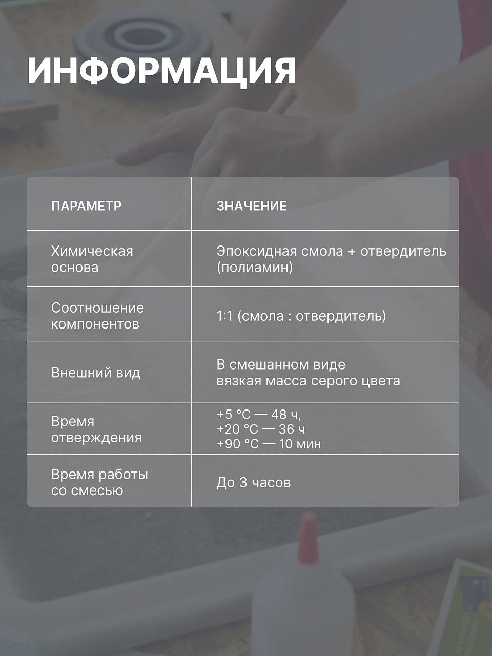 Компонент 1(адгезит) - смола эпоксидно-диановая, минеральные наполнители;