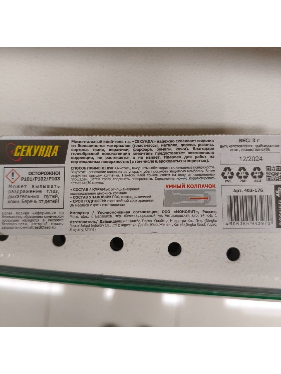 Вы можете приобрести «Клей-гель Секунда, универсальный, однокомпонентный, 3 г, 403-176» и другие товары в нашем интернет-магазине в Краснодаре по низким ценам и с бесплатным самовывозом.