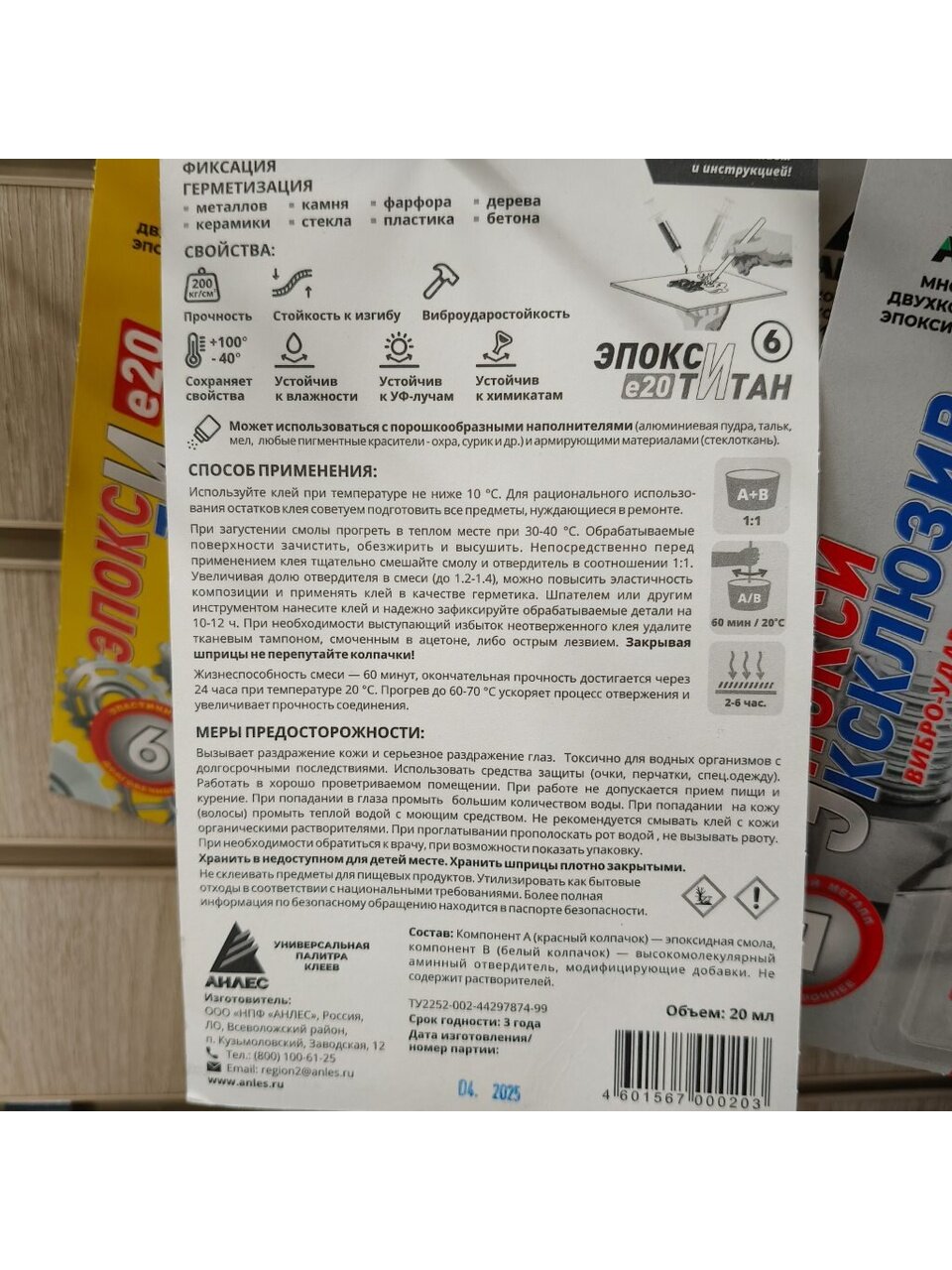 Вы можете приобрести «Клей Анлес, эпоксидный, водостойкий, двухкомпонентный, 20 мл, 20 г, 70020, Титан» и другие товары в нашем интернет-магазине в Обнинске по низким ценам и с бесплатным самовывозом.