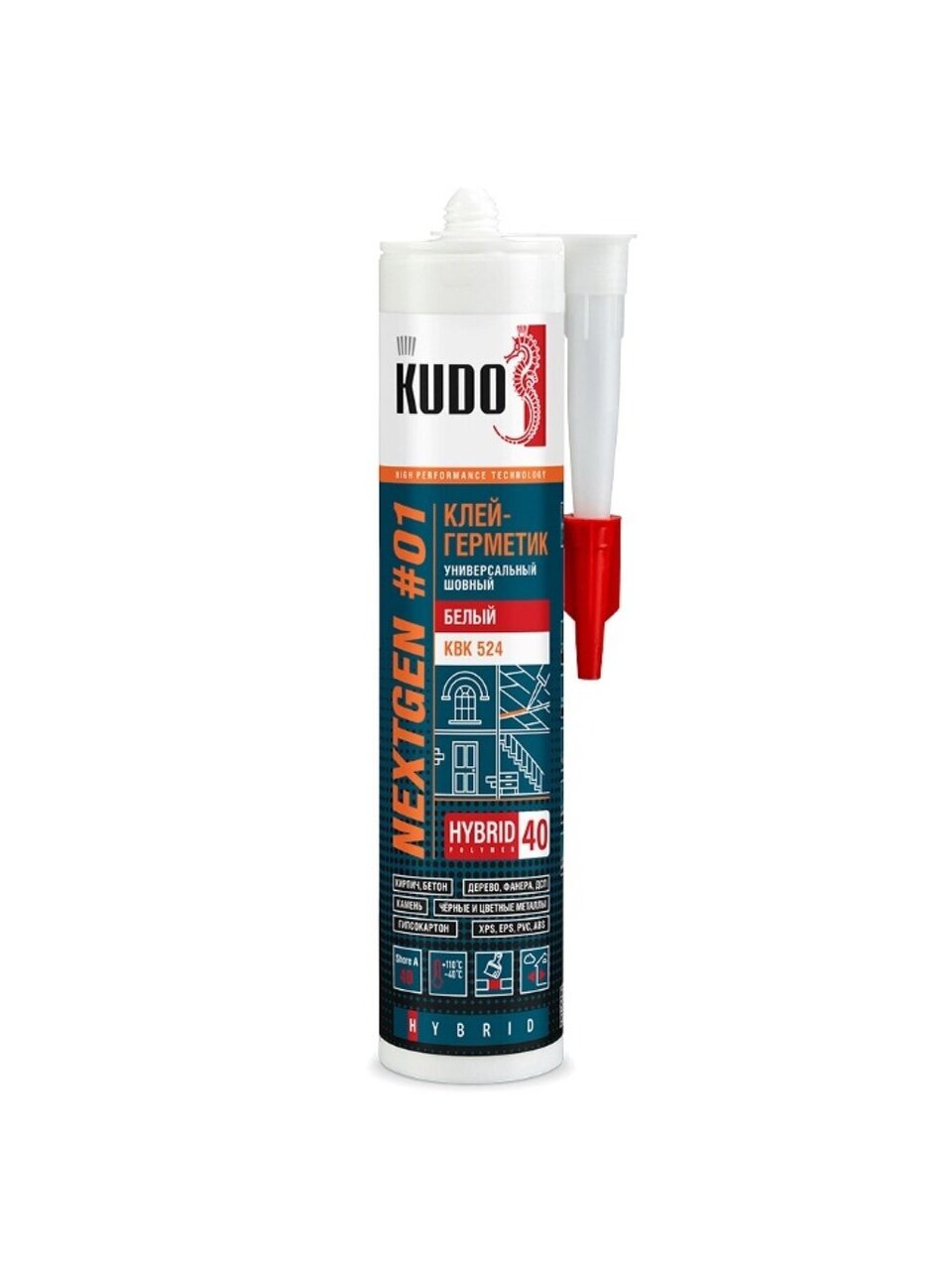 Клей-герметик KUDO характеризуется превосходной адгезией к большинству строительных материалов: кирпич, бетон, стекло, гипсокартон, полиуретан, различные виды пластика (кроме полиэтилена, полипропилена и фторопласта), эмаль, керамика, сталь, медь, цинк, свинец, алюминий, дерево. Не требует предварительного грунтования. Для внутренних и наружных работ.