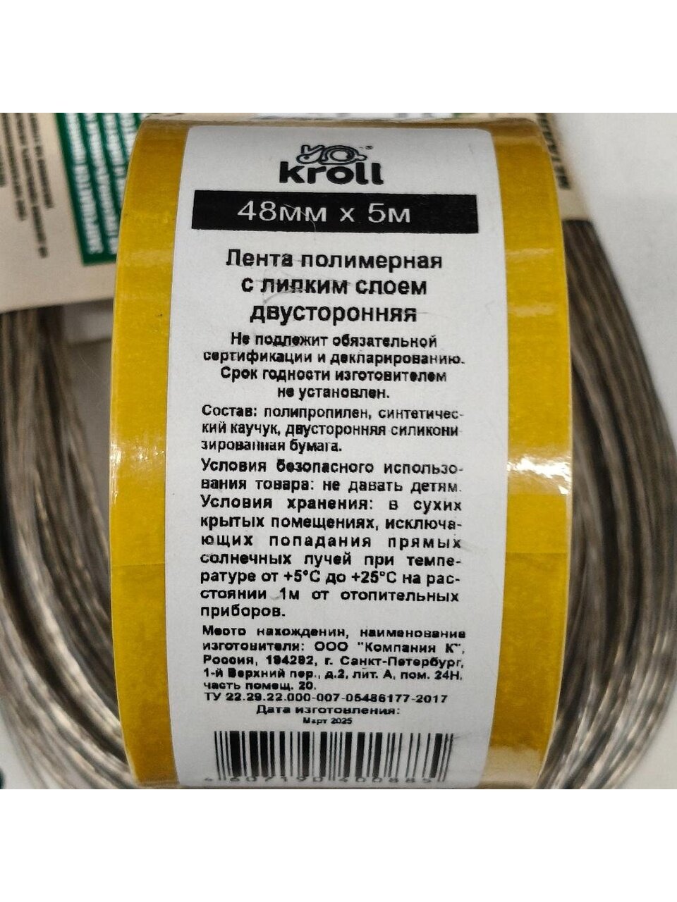 Клеящая лента двухсторонняя Kroll Special PP — это лента, представляющая собой полипропиленовую основу-носитель с нанесенным с двух сторон клеевым слоем (на основе синтетического каучука), наружный клеевой слой защищен силиконизированной бумажной полосой.