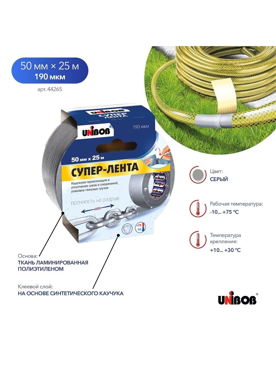 Высокопрочная клейкая лента армированная Unibob 44265 — надежное решение для прочного и быстрого скрепления, ремонта и фиксации. Прочная тканевая и полипропиленовая основа толщиной 175 мкм обеспечивает долговечность и устойчивость к разрывам. Длина 25 м и ширина 50 мм позволяют использовать ленту для различных задач в доме и на даче. Отличный выбор для тех, кто ценит качество и удобство.