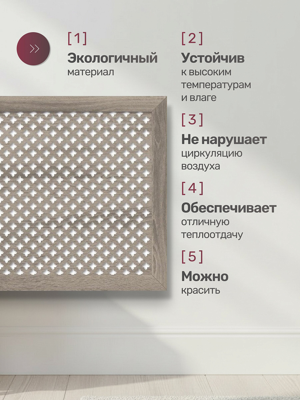 Экран для радиатора – это не просто элемент декора, это функциональный и практичный аксессуар, который способен преобразить ваш интерьер и сделать его более комфортным и уютным. Он так же поможет защитить от случайных ожогов и травм, а это особенно актуально для семей с маленькими детьми и домашними животными.