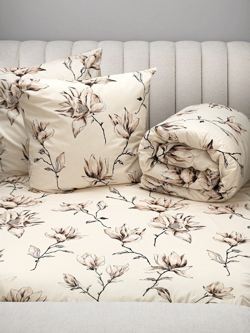 Часто спрашивают, чем отличается бязь от сатина или полиэстера. Бязь — это натуральная хлопковая ткань, более плотная и износостойкая, не требует особого ухода и легко стирается при 40 градусах. Комплект «Нерина» не имеет молний и пуговиц, что уменьшает вероятность повреждения ткани при стирке. Благодаря универсальному бежевому цвету и цветочному принту, белье гармонично впишется в любой интерьер, а подарочная упаковка делает его отличным выбором для подарка на новоселье или юбилей.