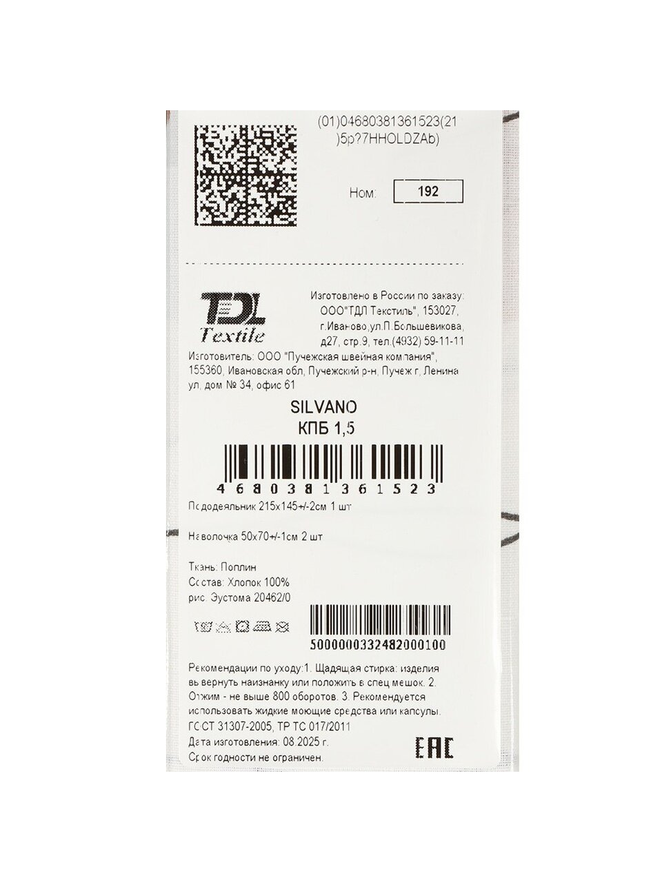 Вы можете приобрести «Постельное белье 1.5-спальное, 2 наволочки 50х70 см, пододеяльник 145х215 см, Silvano, поплин, 20462» и другие товары в нашем интернет-магазине в Ельце по низким ценам и с бесплатным самовывозом.