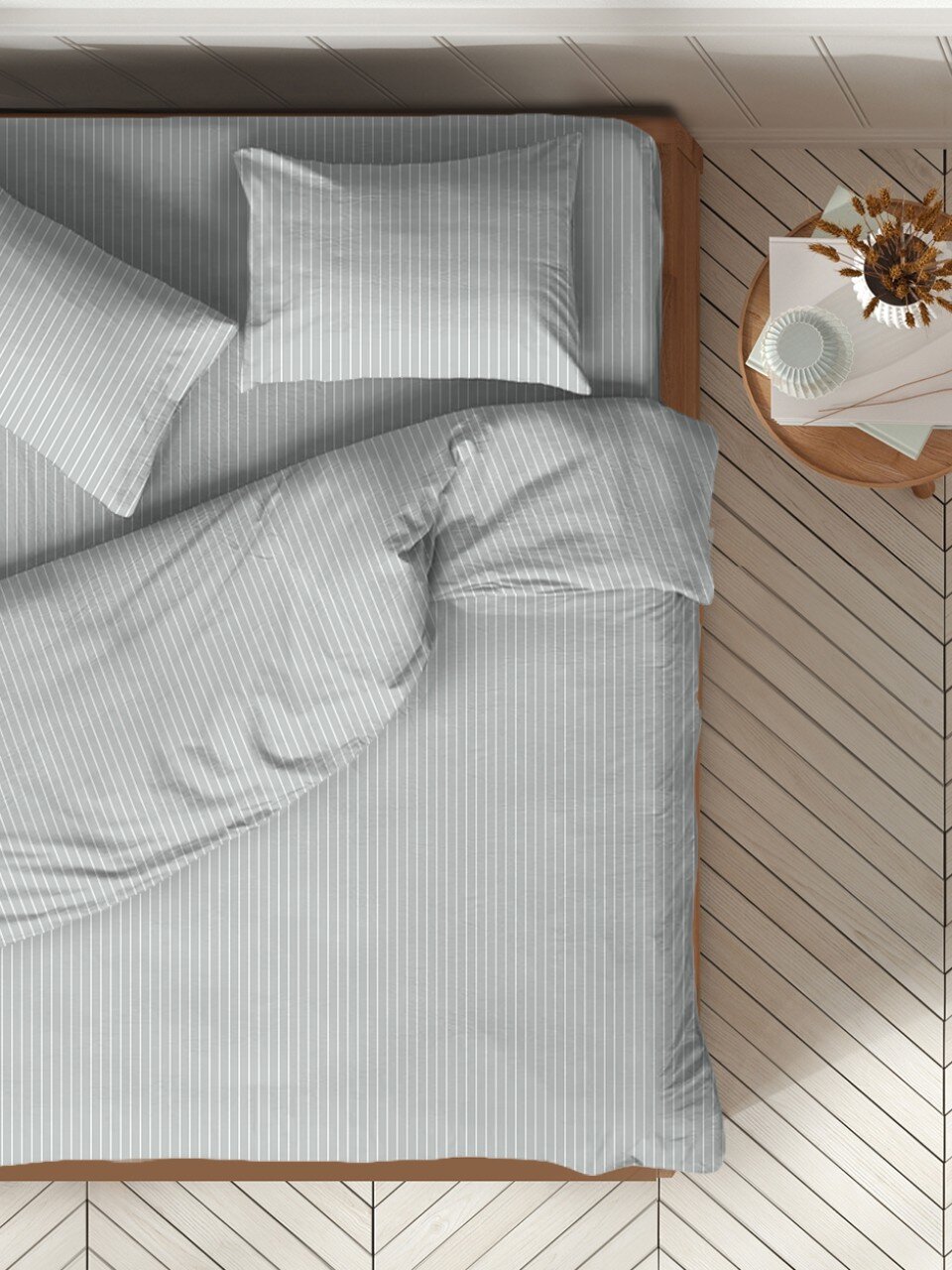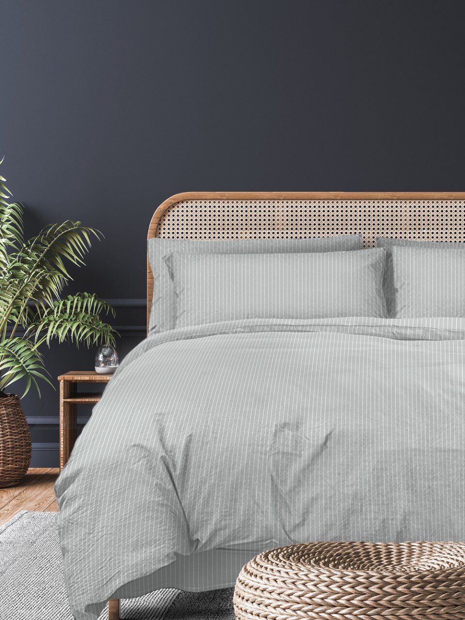 - Уникальный дизайн в серых полосках — универсальный стиль для любого интерьера.
