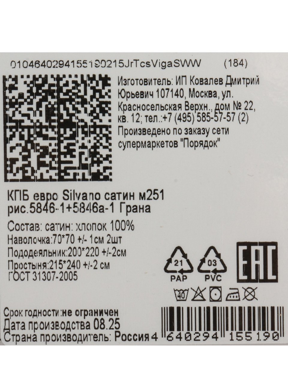 Постельное белье евро Silvano Грана — сатин, хлопок, 4 предмета: идеальный комплект для комфортного сна и стильного интерьера. Универсальный размер для семьи и подарка.