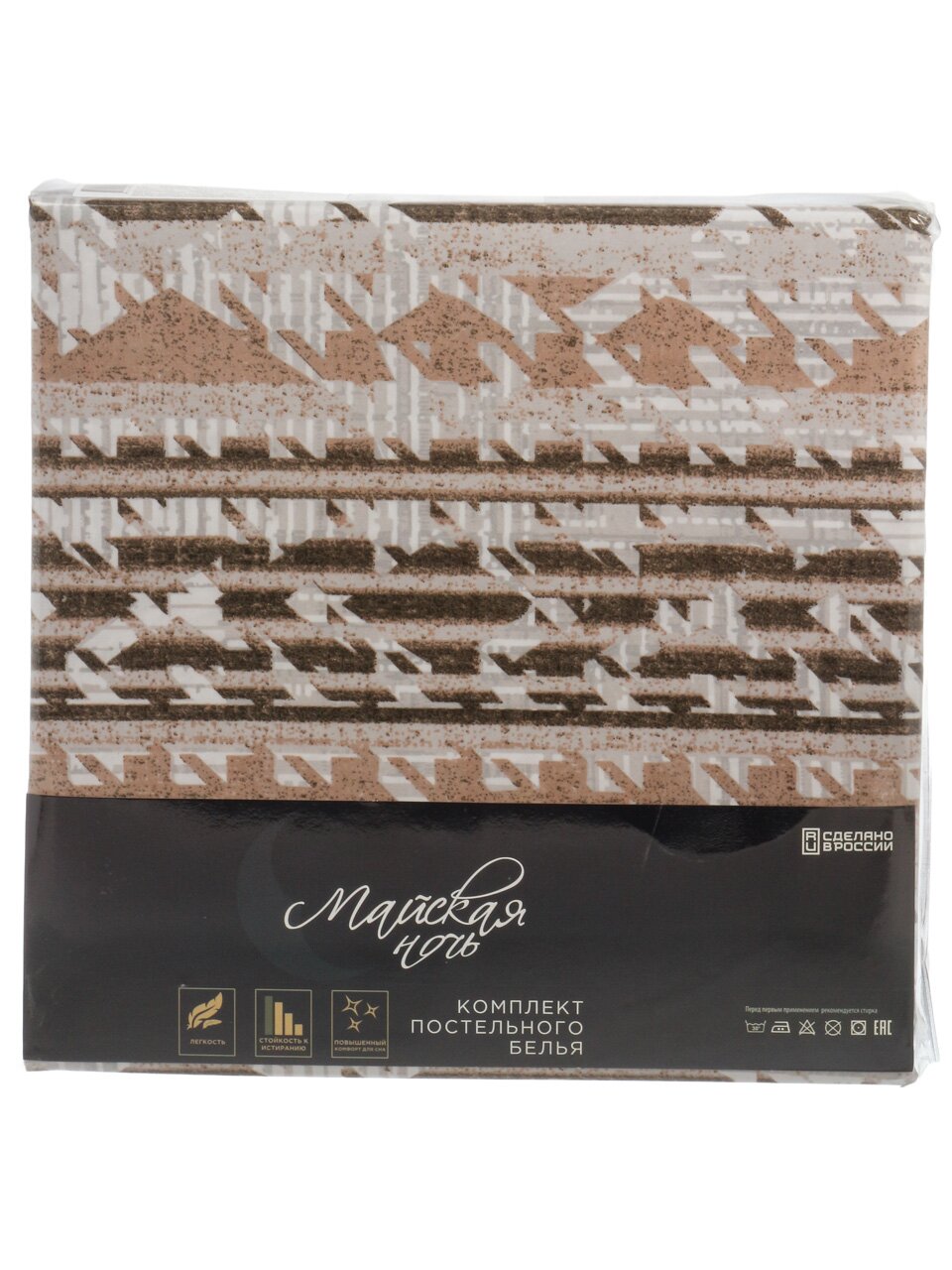 Семейное постельное белье «Майская ночь» из полисатина: стильный серый орнамент, 5 предметов, подарочная упаковка. Идеально для дома, дачи и подарка.