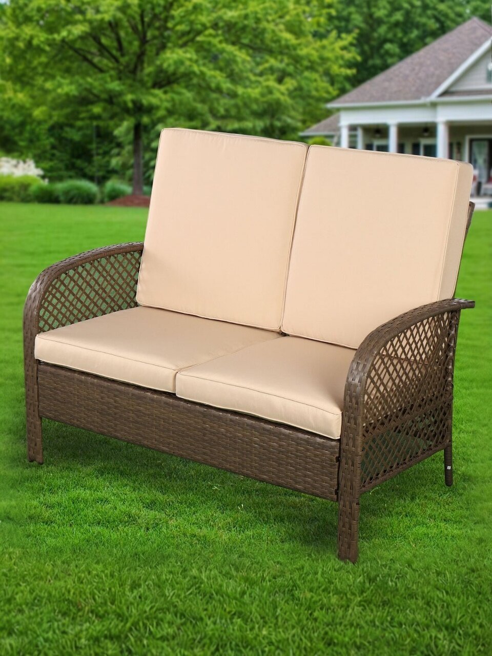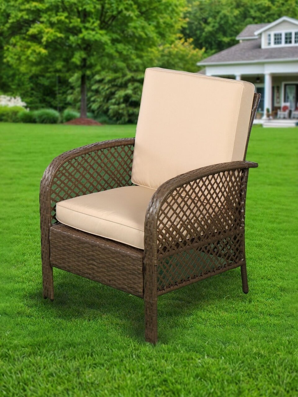 - Обивка: плоский ротанг из полиэтилена;
