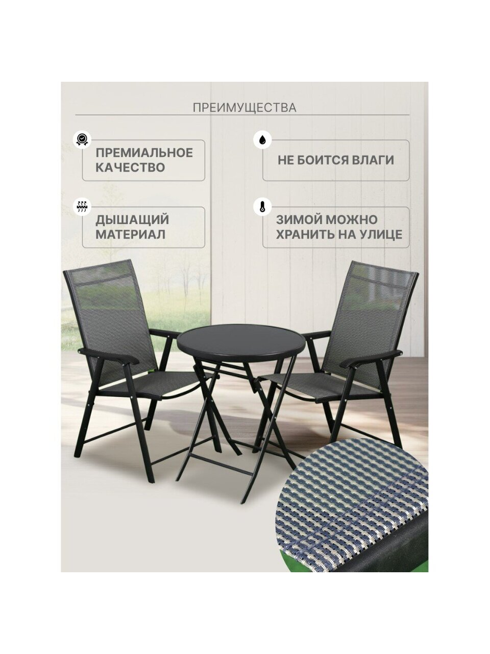 Вы можете приобрести «Мебель садовая Твикс Мини, черная, стол, 60х60 см, 2 кресла, 120 кг, Y84-0001» и другие товары в нашем интернет-магазине в Борисоглебске по низким ценам и с бесплатным самовывозом.