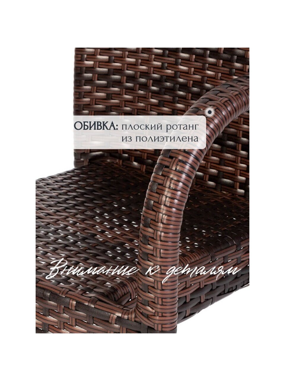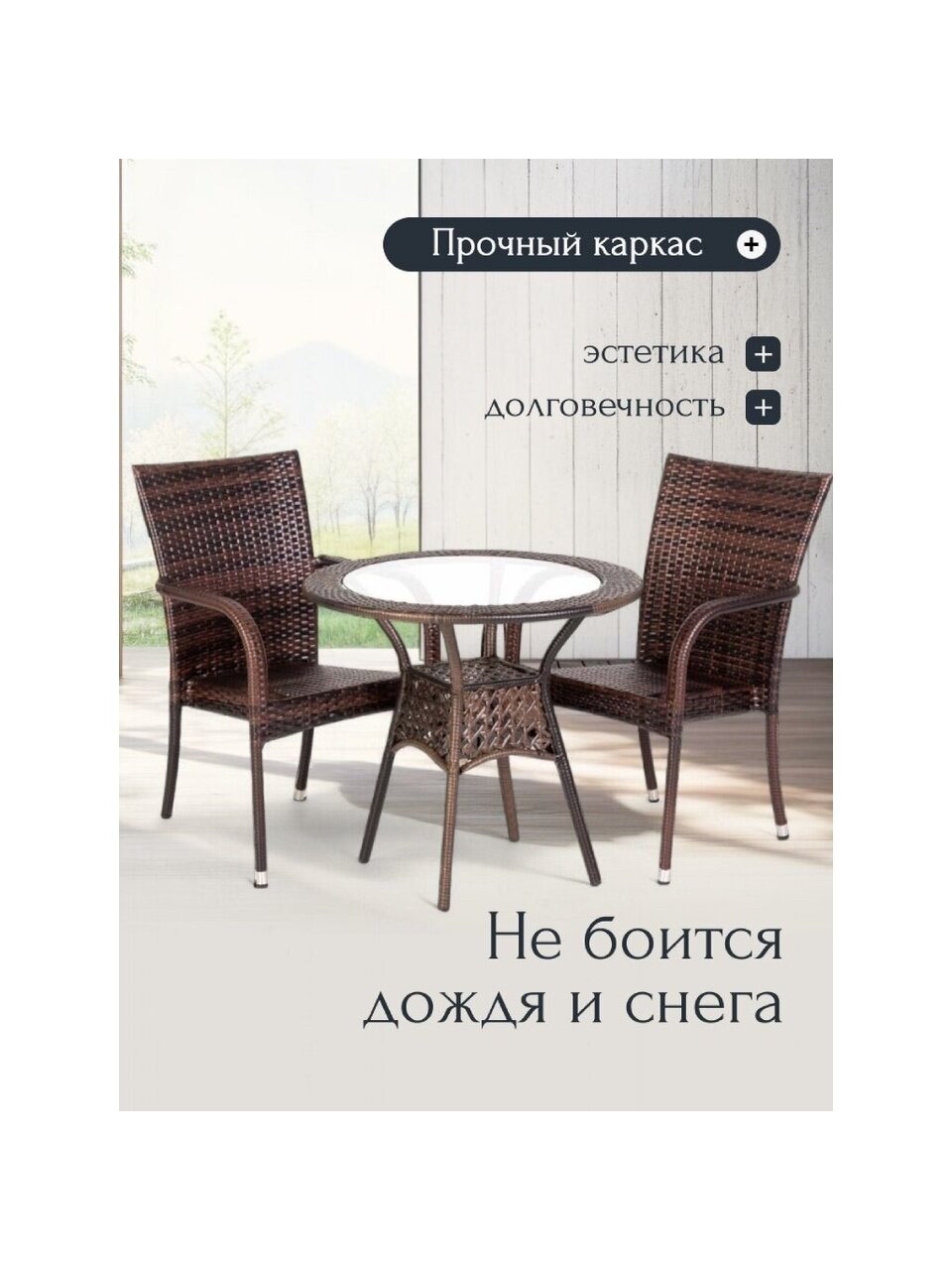 Компактный стол размером 60х60х60 см и два кресла размером 57х62х90 см идеально подойдут для небольших пространств, обеспечивая удобство и функциональность. Этот комплект станет отличным дополнением для утреннего кофе, обедов на свежем воздухе или вечерних посиделок с друзьями.