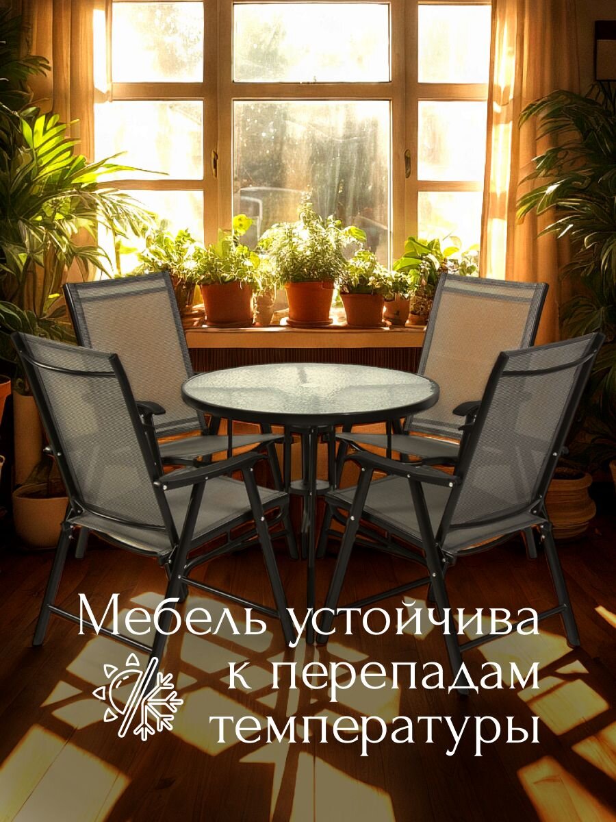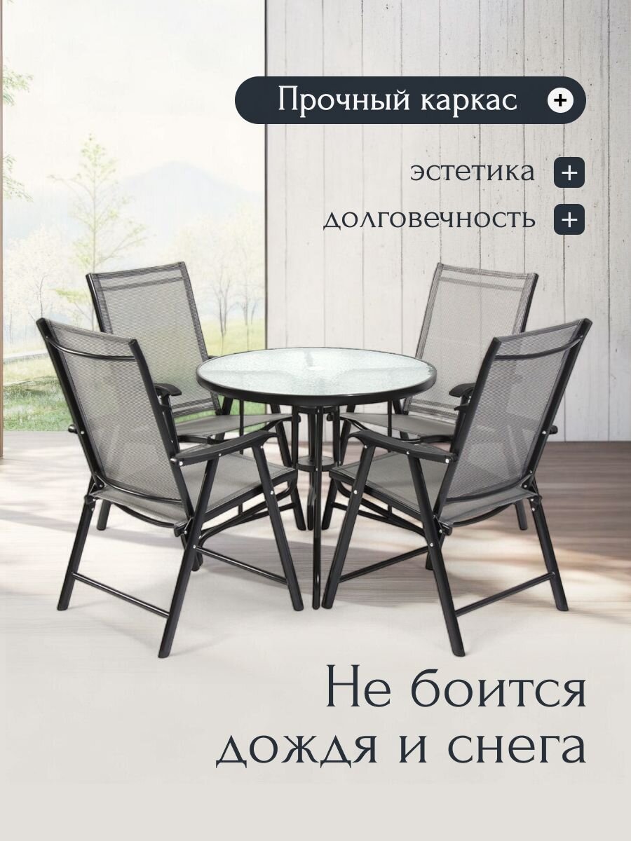 Комплект "Таллин" предлагает не только стильный внешний вид, но и практичность в использовании. Благодаря складной конструкции, мебель легко складывается и убирается, что особенно удобно для хранения в зимний период или при необходимости освободить пространство. Водонепроницаемость материалов гарантирует долговечность и сохранение эстетичного вида даже при частом использовании на улице.