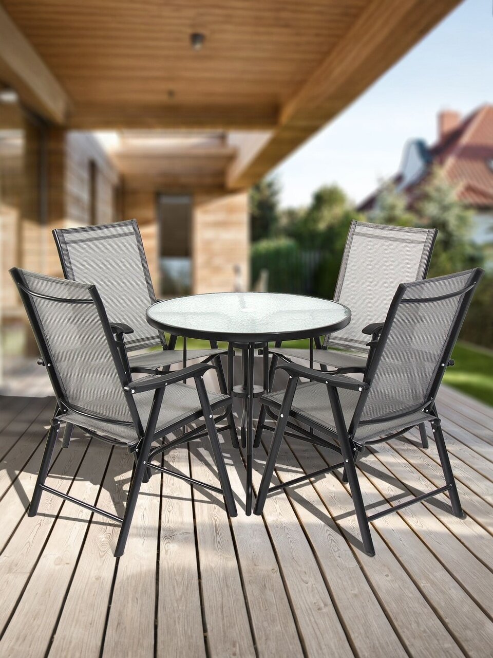 Создайте уютное и стильное пространство на вашем участке с мебельным комплектом "Таллин". Этот комплект станет идеальным решением для создания комфортной зоны отдыха на свежем воздухе. Прекрасно подходящий для семейных обедов или встреч с друзьями, он привнесет в ваш сад или террасу атмосферу уюта и изысканности. Комплект включает в себя круглый стол и четыре удобных стула, выполненных в элегантном черном цвете, который легко впишется в любой экстерьер.