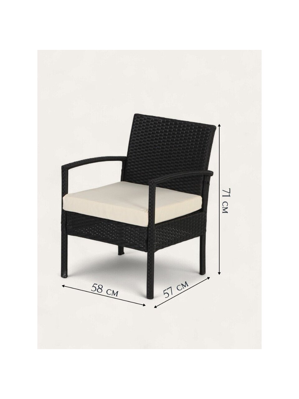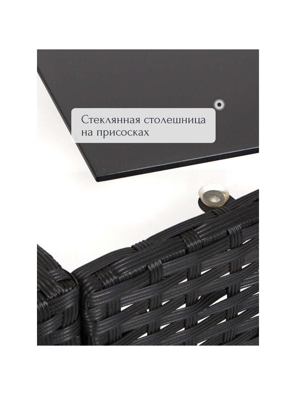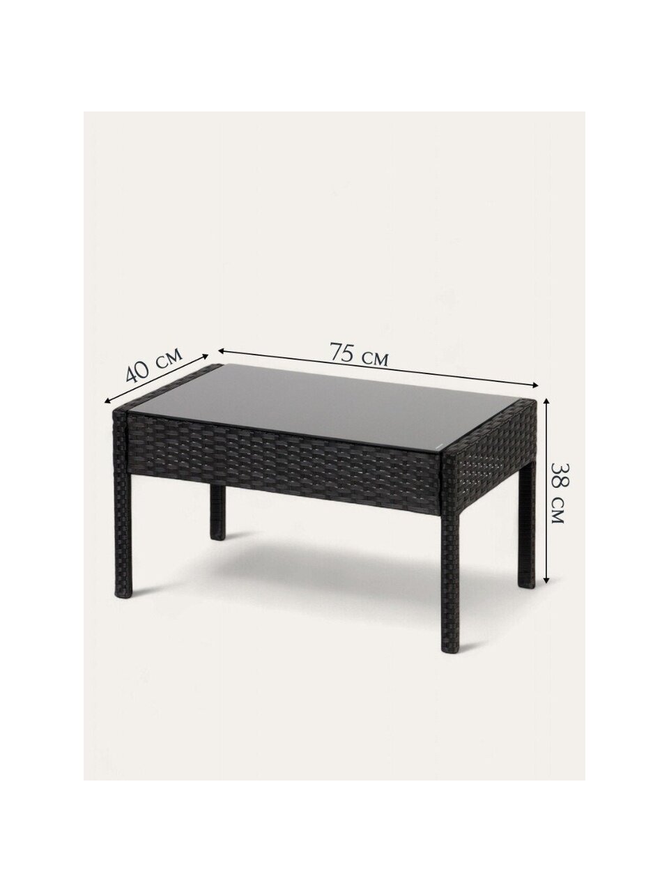 Садовая мебель "Намибия" включает в себя стол, два кресла и диван, создавая уютное место для отдыха в компании друзей или семьи. Стол с прямоугольной столешницей размером 75х40 см и высотой 38 см идеально подходит для размещения напитков и закусок. Черный цвет мебели добавляет элегантности и легко сочетается с различными стилями оформления.