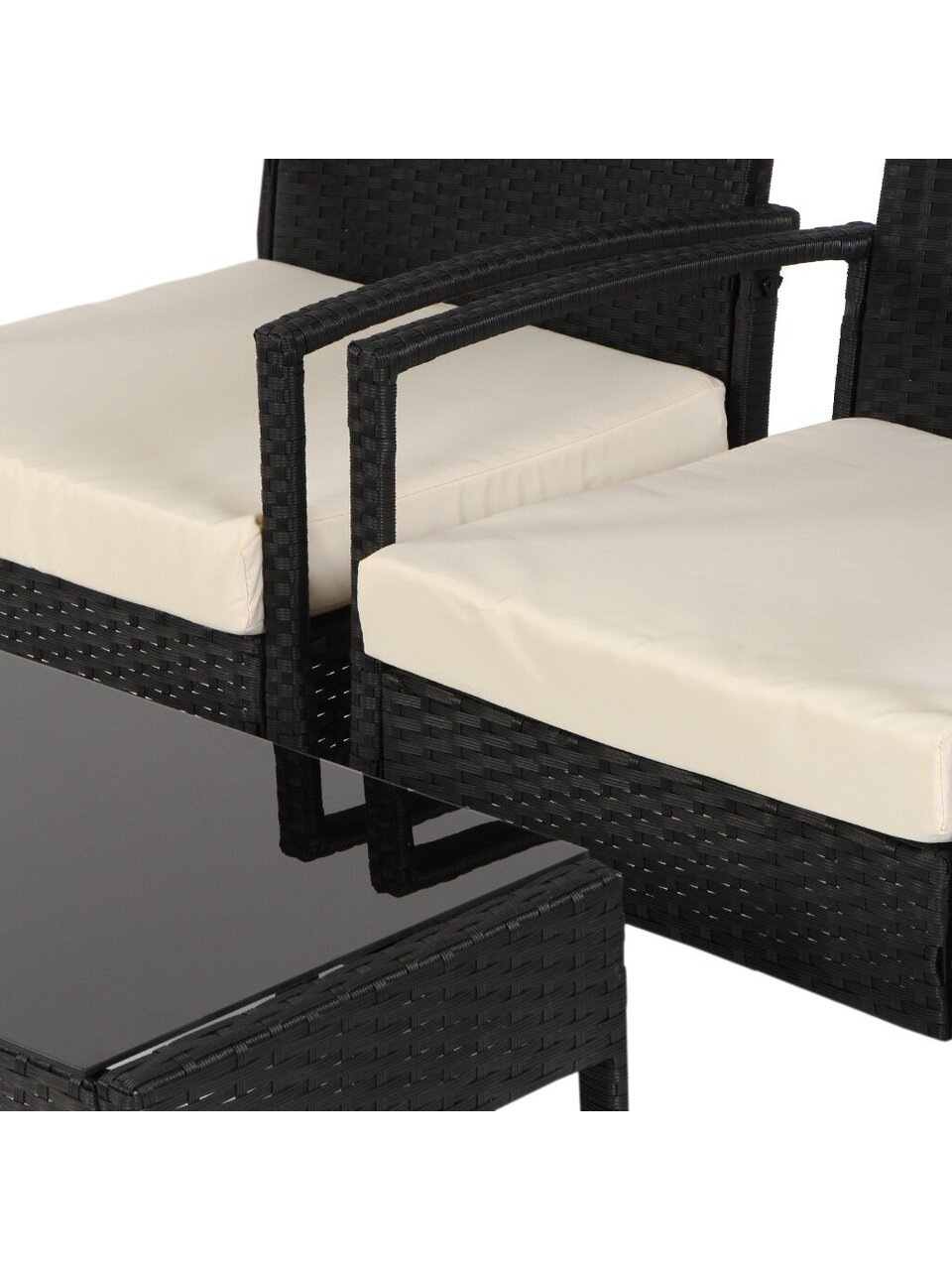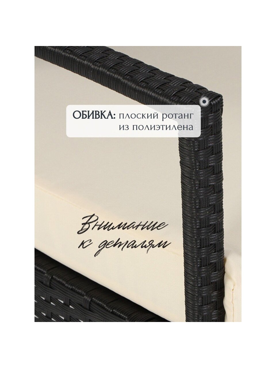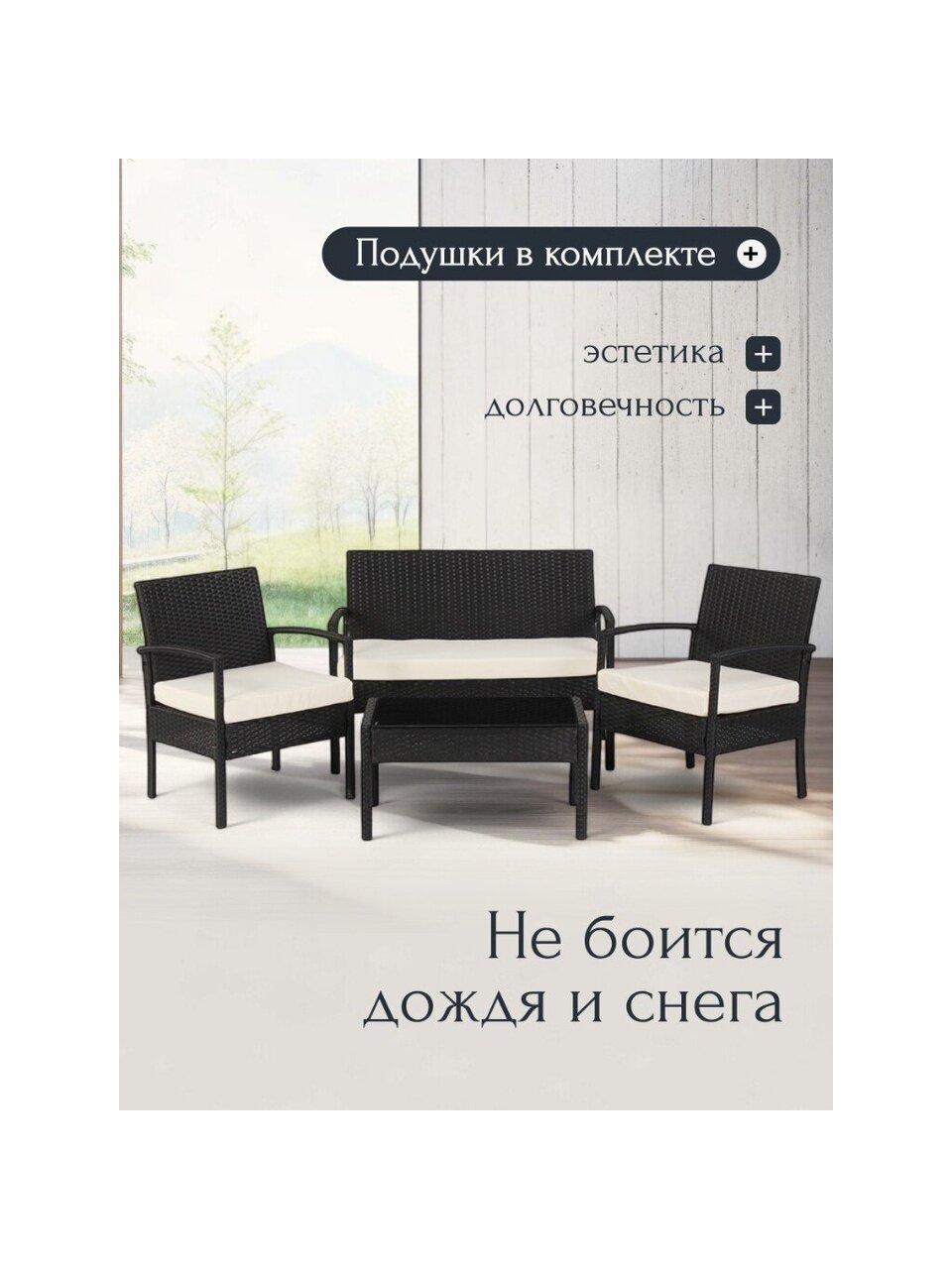 Садовая мебель "Намибия" включает в себя стол, два кресла и диван, создавая уютное место для отдыха в компании друзей или семьи. Стол с прямоугольной столешницей размером 75х40 см и высотой 38 см идеально подходит для размещения напитков и закусок. Черный цвет мебели добавляет элегантности и легко сочетается с различными стилями оформления.