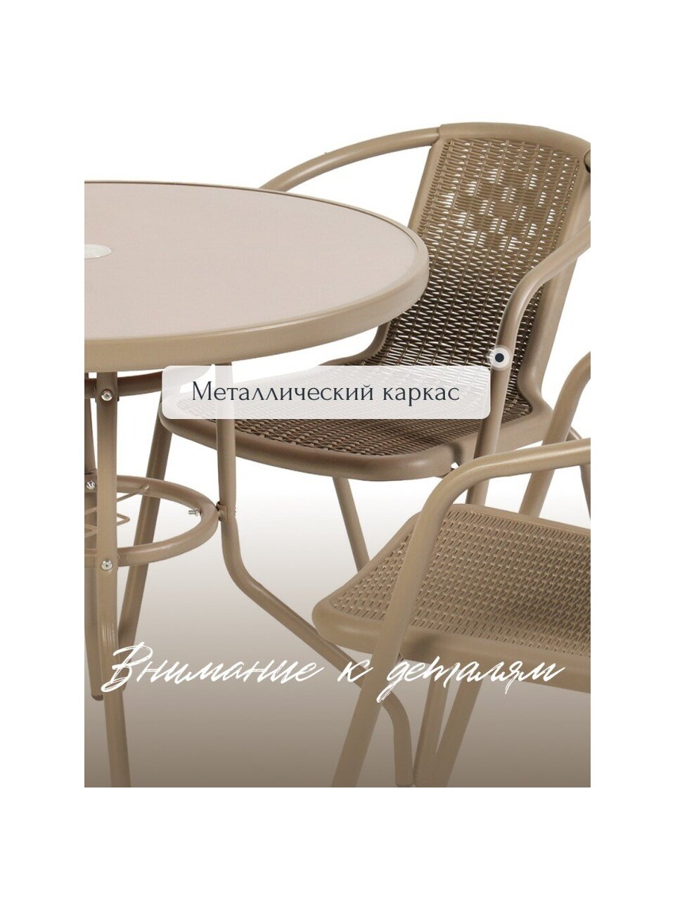 Комплект Пуэрто NEW — это удачное сочетание функциональности и эстетики. Легкость конструкции облегчает перестановку и хранение, а отсутствие складного механизма обеспечивает дополнительную прочность. Мебель легко очищается от загрязнений, что особенно важно для использования на улице.