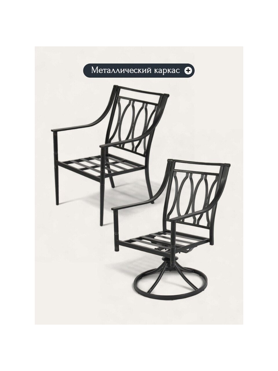 В комплекте необходимо собрать стол и стулья с круглым основанием(присоединить основание с остальному каркасу). Стулья на ножках идут цельным каркасом.