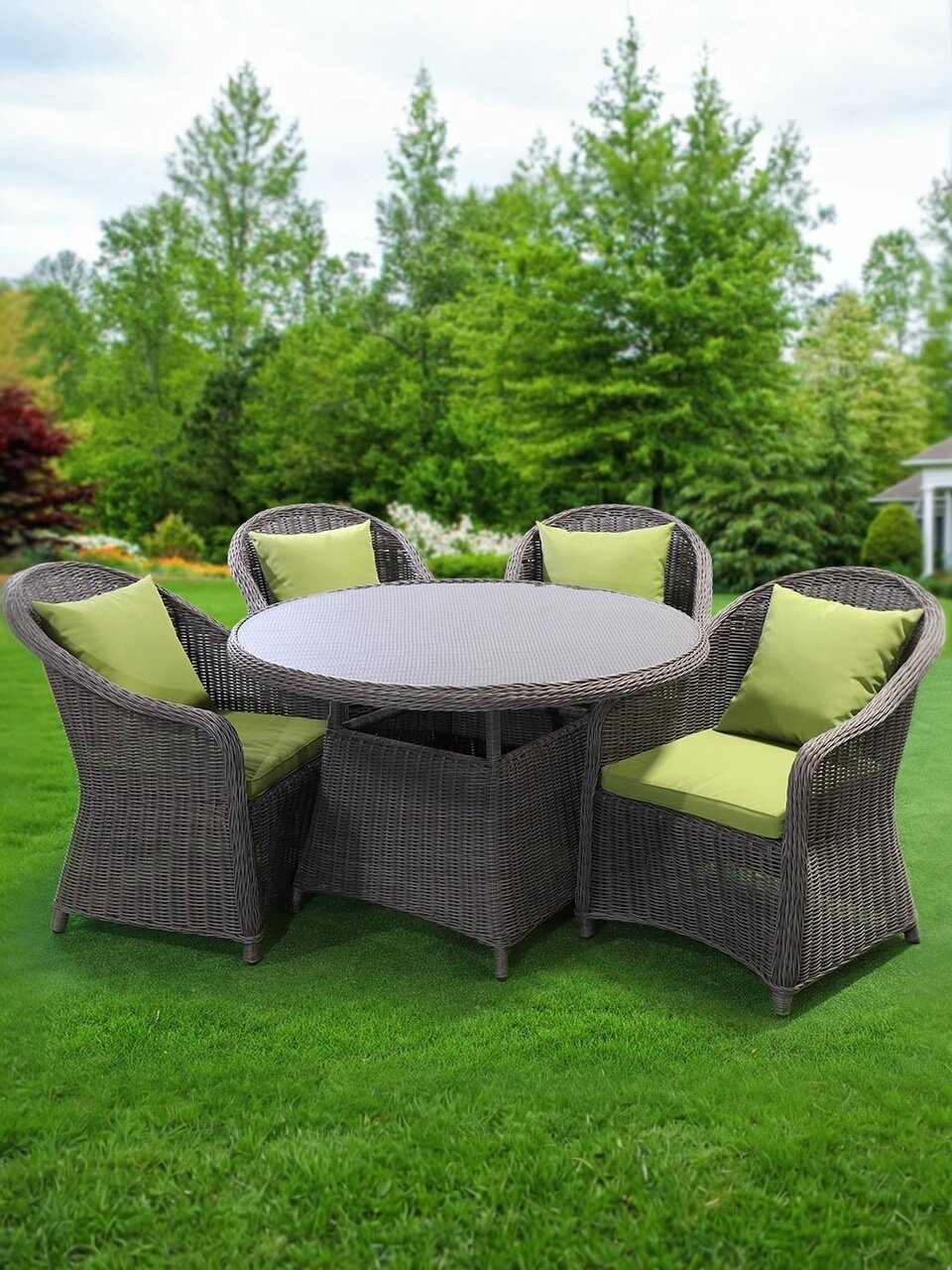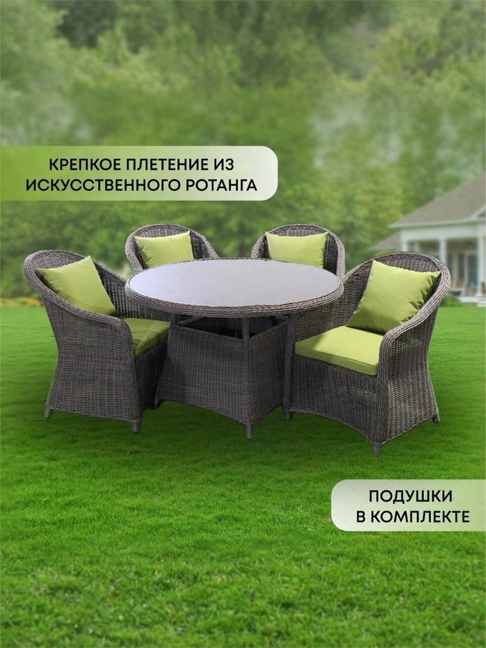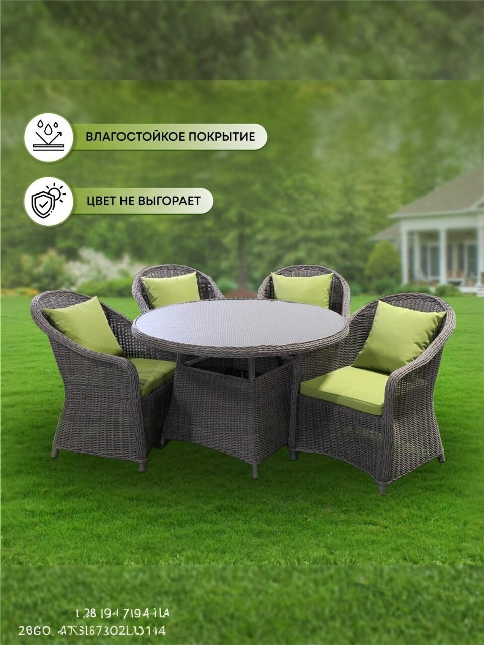 Вы можете приобрести «Мебель садовая Green Days, Элит Премиум, серая, стол, 118х118х75 см, 4 кресла, подушка зеленая, CYH1830W-1» и другие товары в нашем интернет-магазине в Курске по низким ценам и с бесплатным самовывозом.