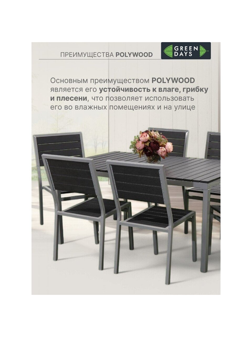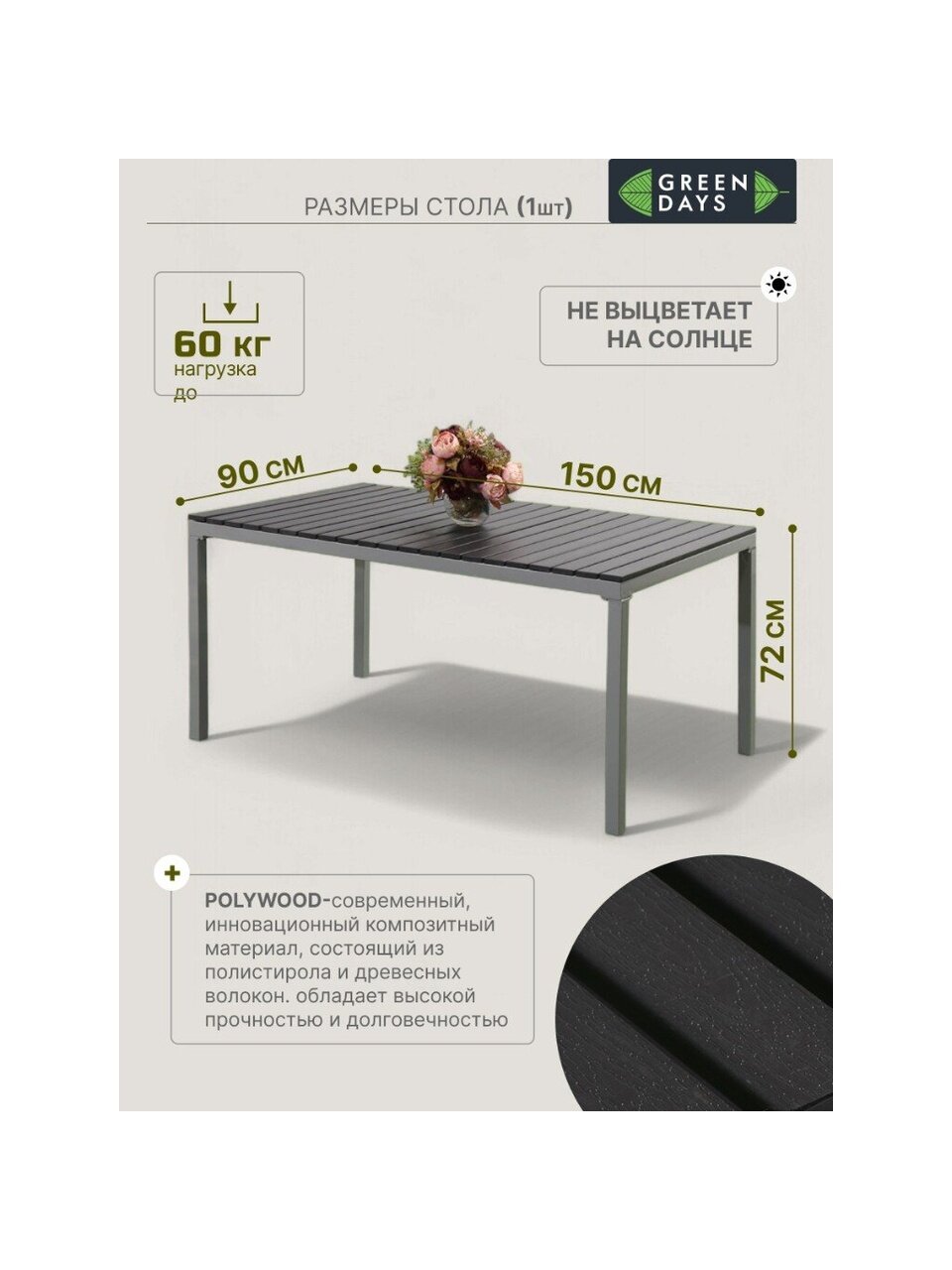 - Столешница изготовлена из материала Polywood;