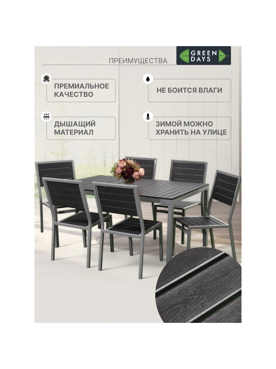 Вы можете приобрести «Мебель садовая Green Days, Эвелина, черная, стол, 150х90х72 см, 6 стульев, 120 кг, YTCT012» и другие товары в нашем интернет-магазине в Твери по низким ценам и с бесплатным самовывозом.