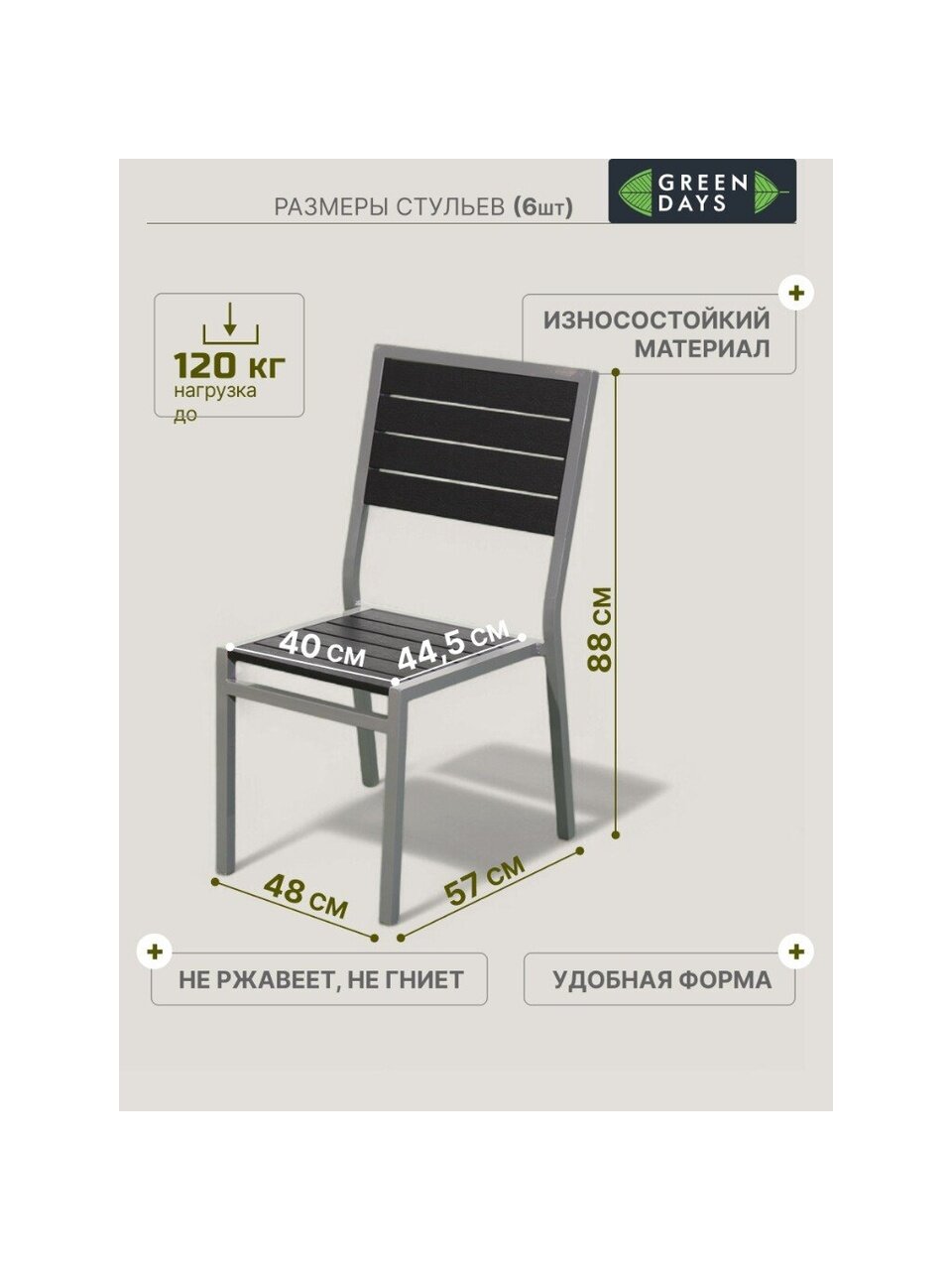 - Максимальная нагрузка на стул:120 кг.