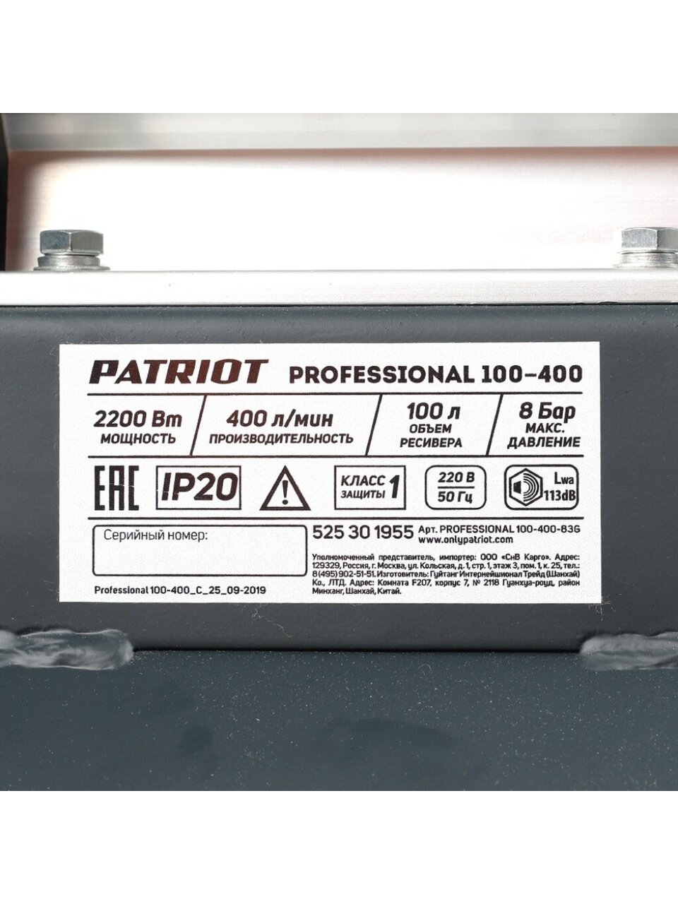 Вы можете приобрести «Компрессор масляный, Patriot, Professional 100-400, 2.2 кВт, поршневой, 100 л, 400 л/мин, 8 бар, прямой, 525301955» и другие товары в нашем интернет-магазине в Брянске по низким ценам и с бесплатным самовывозом.