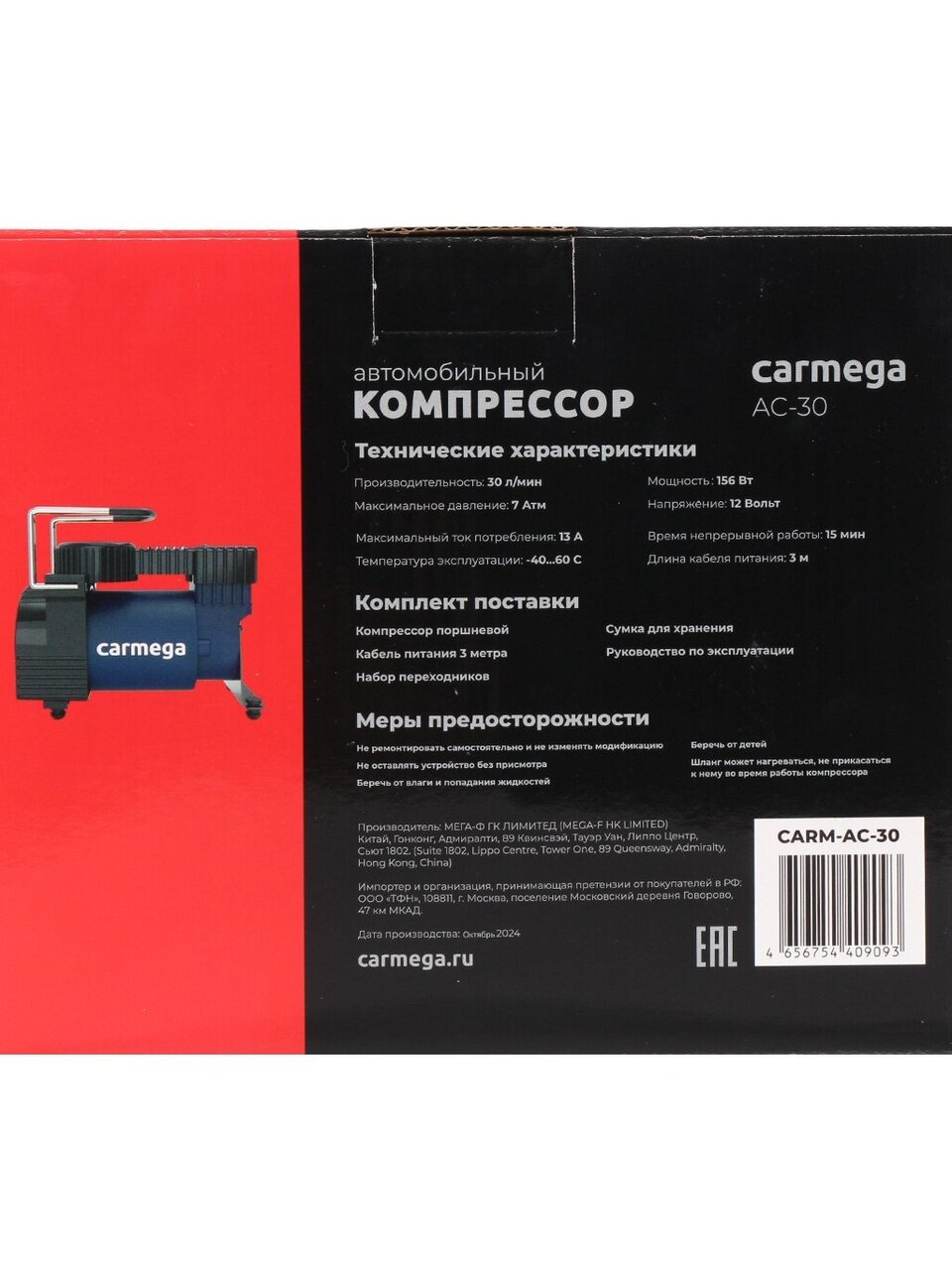 Покупка автомобильного компрессора Carmega AC-30 — это уверенность в безопасности на дороге и экономия времени в любых ситуациях. Надежный помощник поможет поддерживать оптимальное давление в шинах, что способствует экономии топлива, увеличивает срок службы шин и обеспечивает комфортное вождение. Компактный размер и практичная комплектация делают устройство идеальным выбором для использования дома, на даче и в путешествиях. Carmega AC-30 — оптимальный выбор для тех, кто ценит удобство, надежность и функциональность.