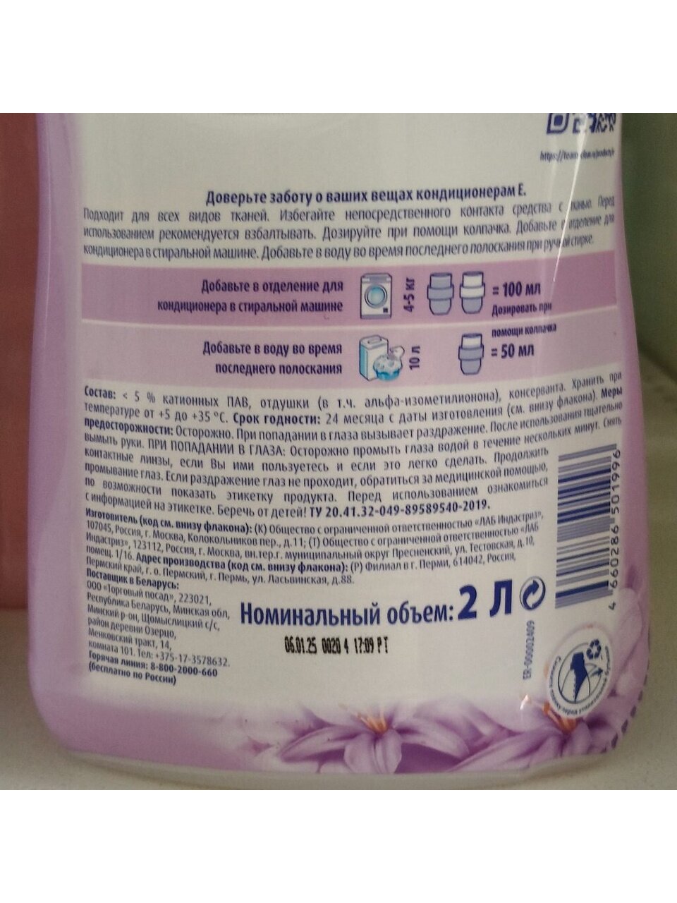 - Кондиционер E облегчает глажку и обладает антистатическим эффектом.