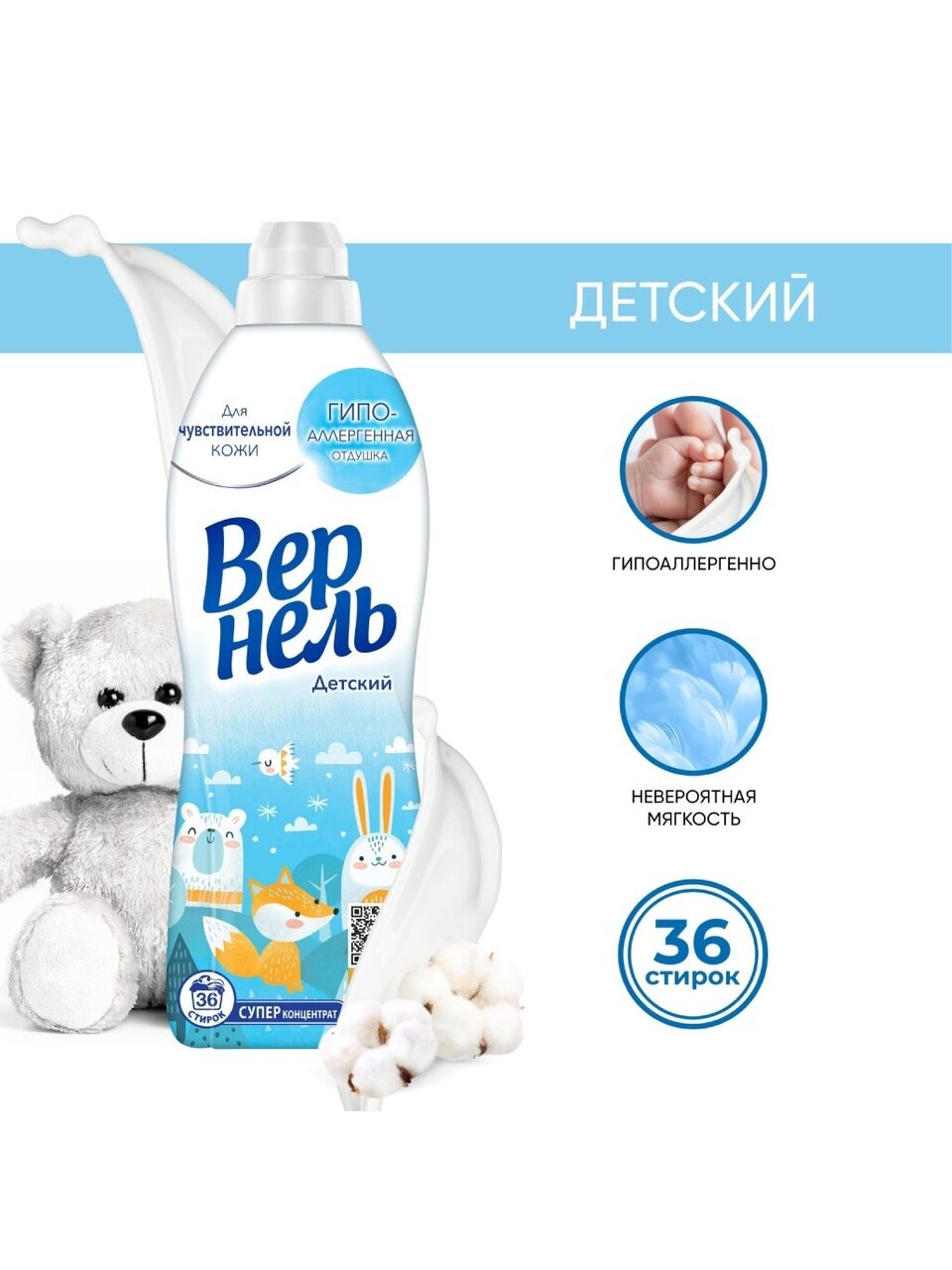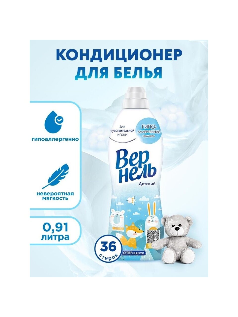 - Кондиционер Вернель Детский придает белью невероятную мягкость и свежесть.