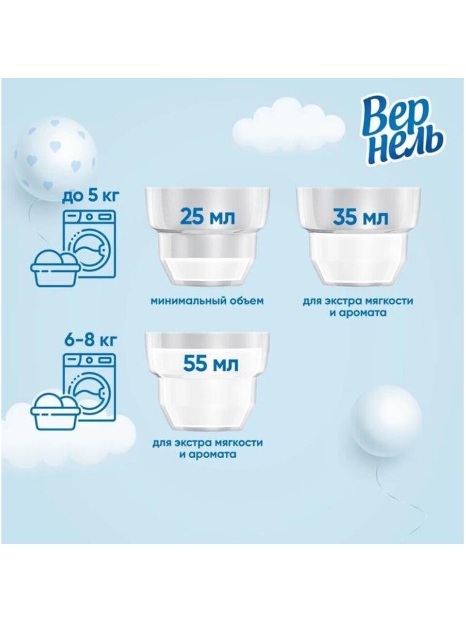 - Средство Вернель благодаря высокой концентрации очень экономично расходуется: на одну стирку достаточно меньше половины колпачка. Поэтому концентрированного средства для полоскания хватает на длительное время.