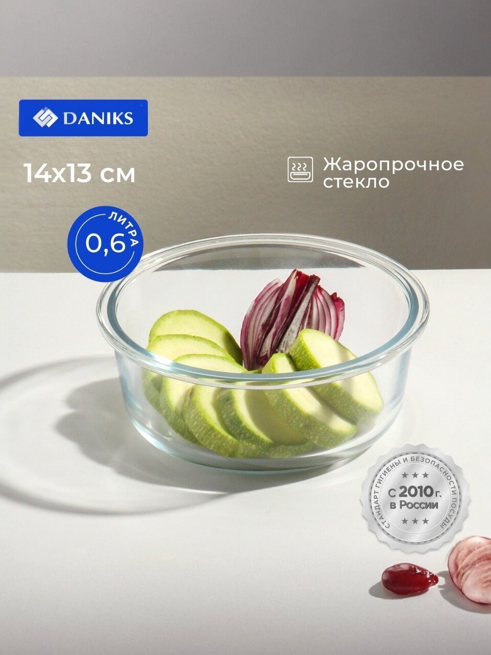 Контейнер Daniks из жаропрочного стекла 0.6 л: герметичное хранение, безопасность для микроволновки, компактность для дома и дачи по выгодной цене.