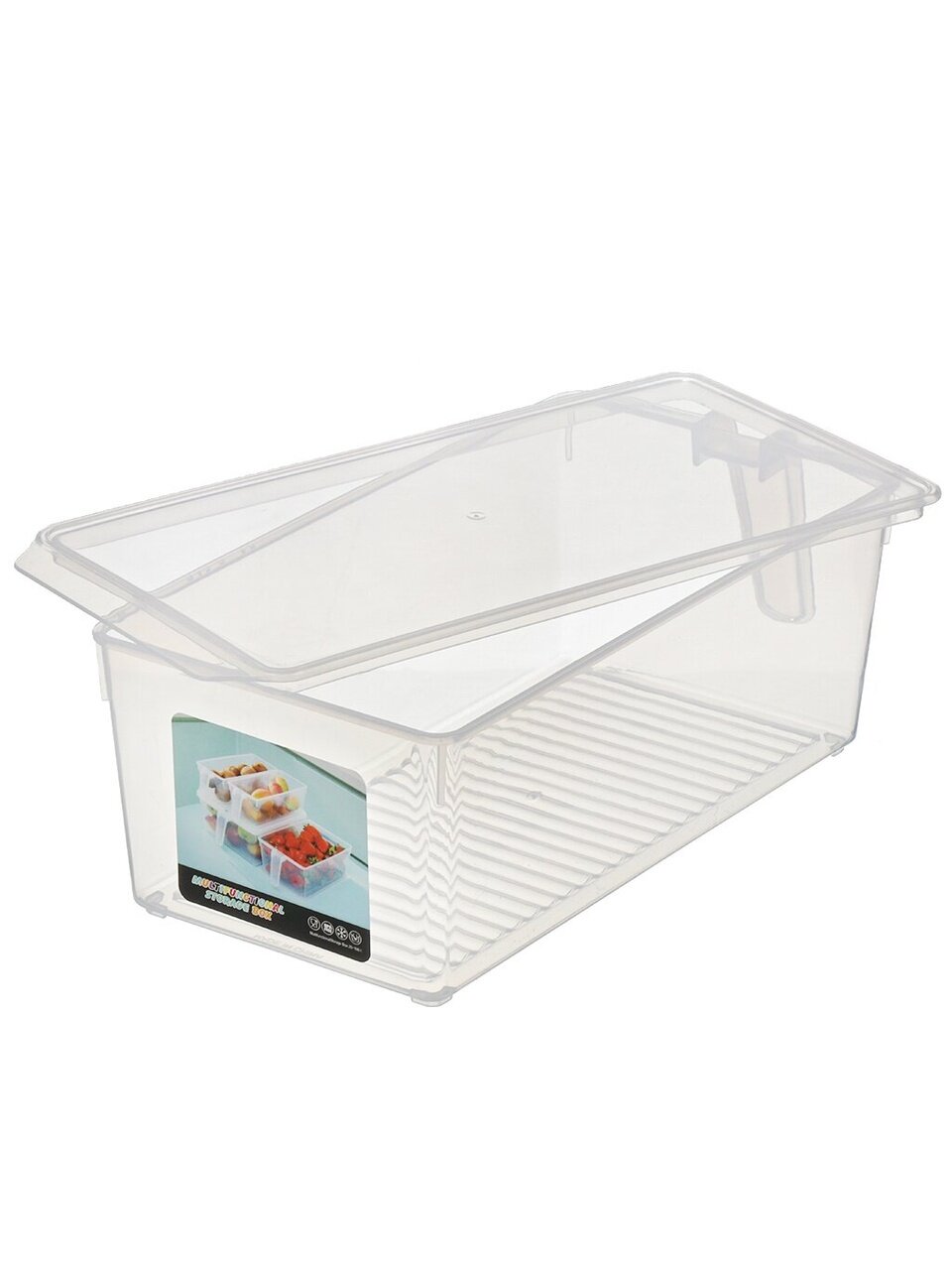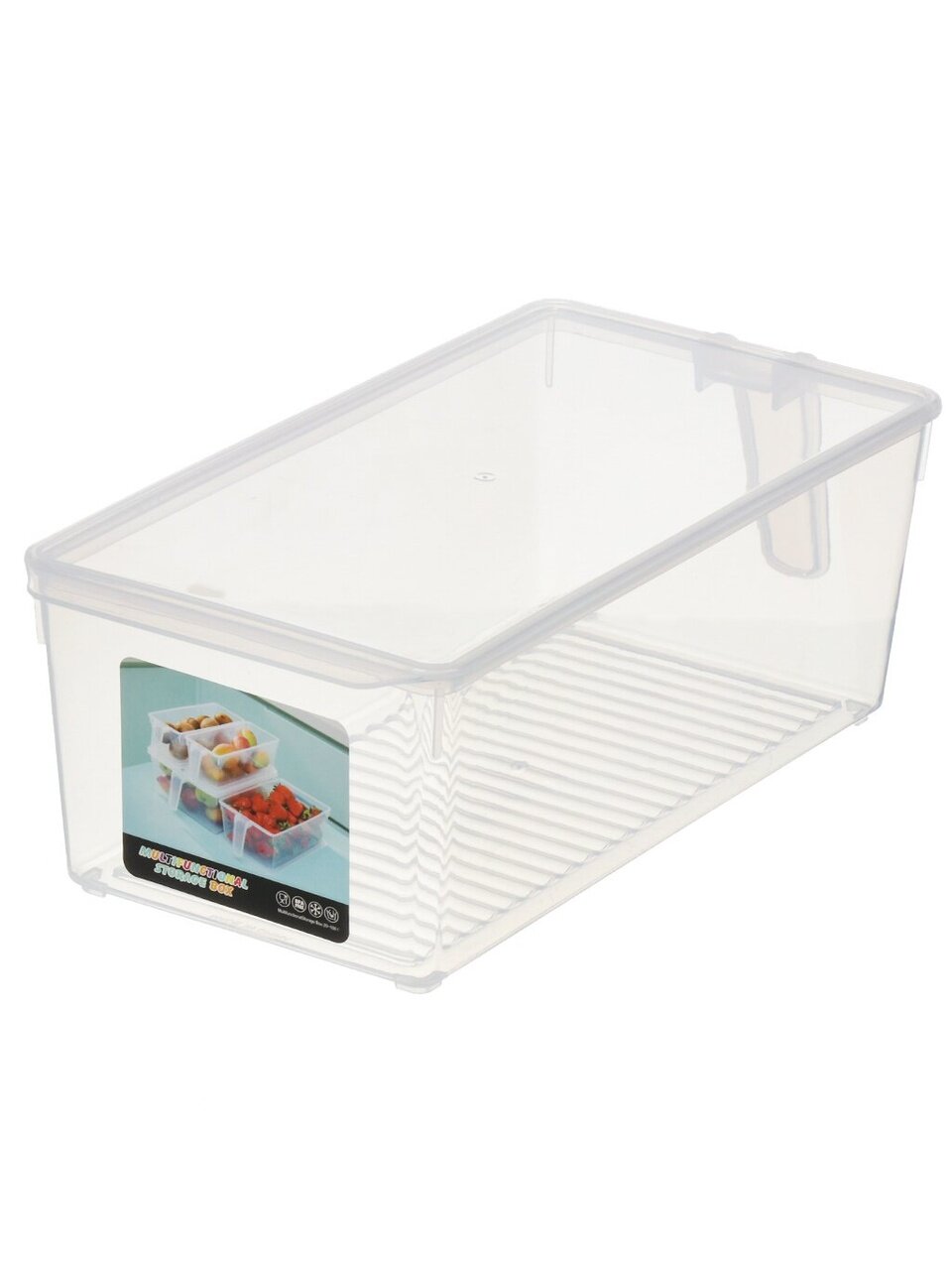 Прозрачный пищевой контейнер 29,5×14,5×10,5 см с ручкой и крышкой — удобно хранить продукты, замораживать и брать с собой. Практичность для дома и дачи!