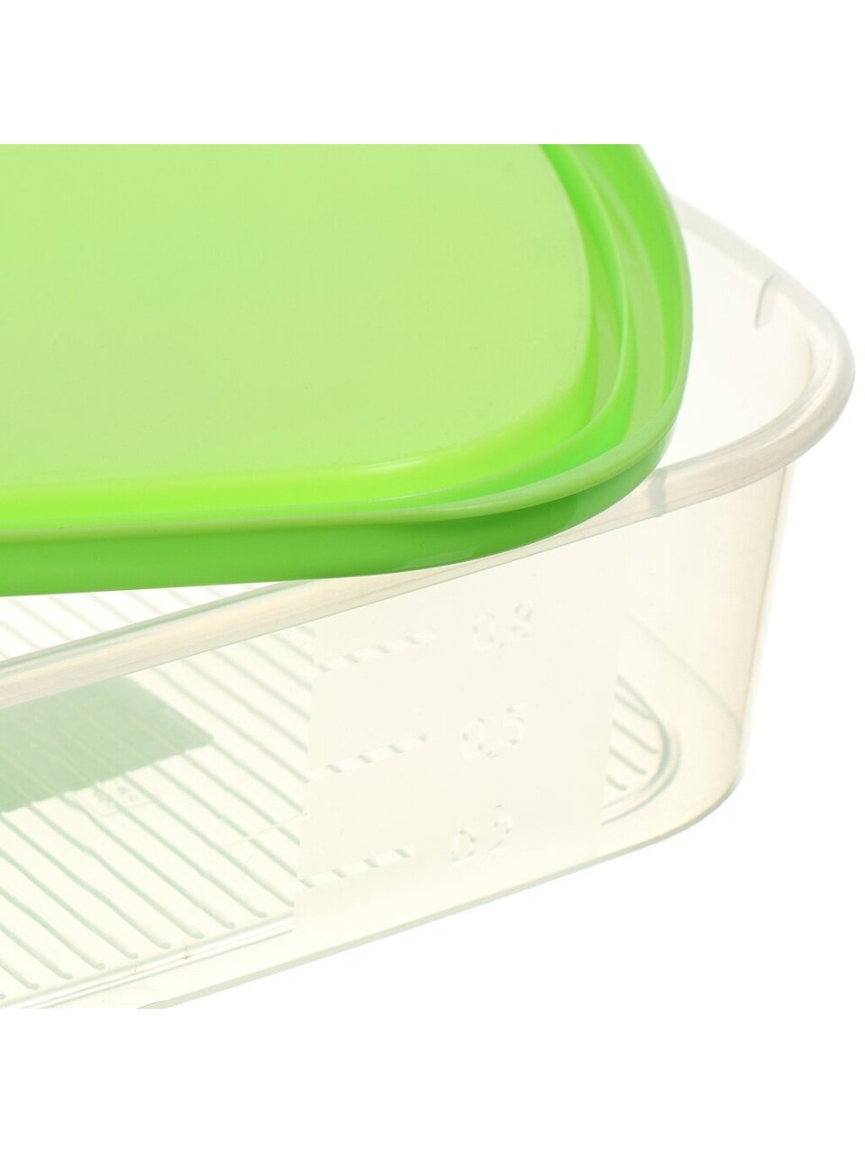 Контейнер прямоугольный, длина — 22 см, ширина — 15 см, высота — 5 см. Объём — 1 литр. Такой формат удобен для хранения небольших порций, нарезанных овощей, сыра, ягод или выпечки.