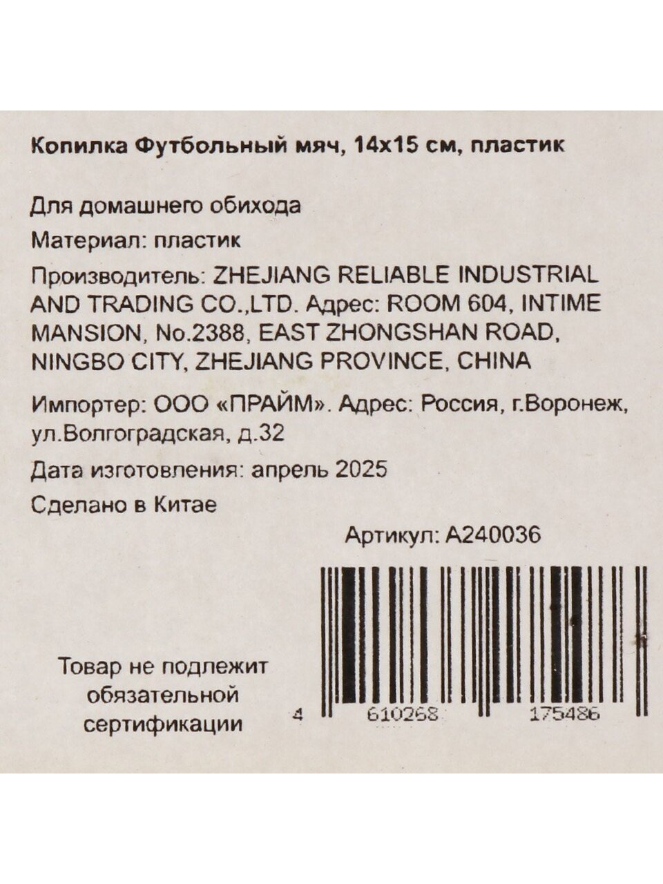 Вы можете приобрести «Копилка Футбольный мяч, 14х15 см, пластик, A240036» и другие товары в нашем интернет-магазине в Армавире по низким ценам и с бесплатным самовывозом.
