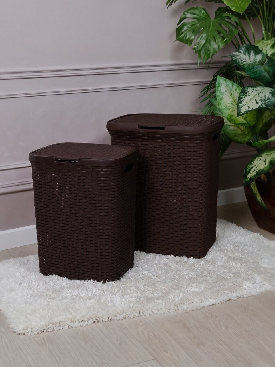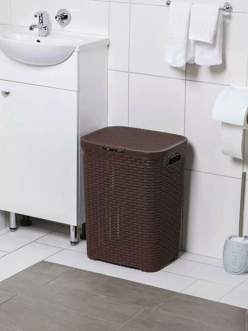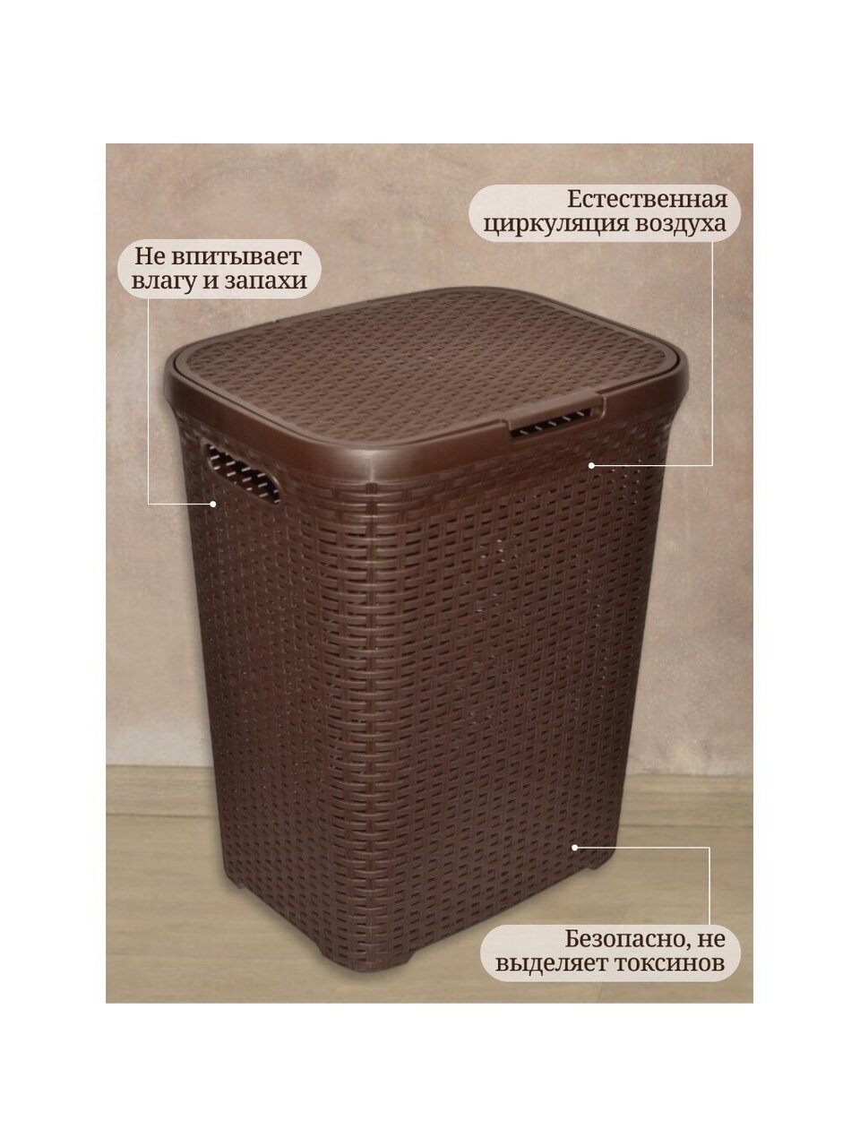 Вы можете приобрести «Корзина для белья, 40 л, 30х38х48 см, прямоугольная, плетеная, пластик, коричневая, с крышкой, Violet, Ротанг, 184001» и другие товары в нашем интернет-магазине в Астрахани по низким ценам и с бесплатным самовывозом.