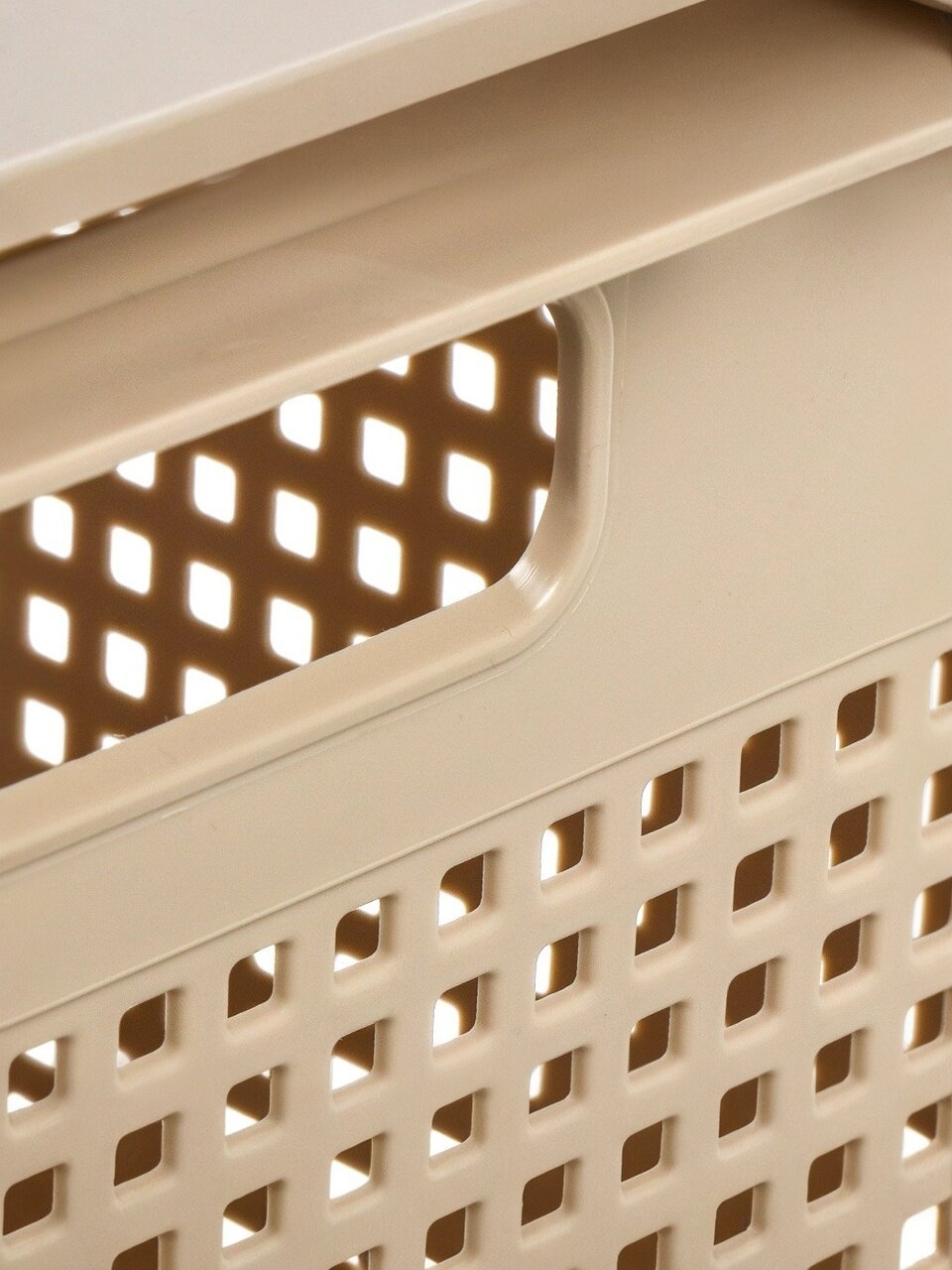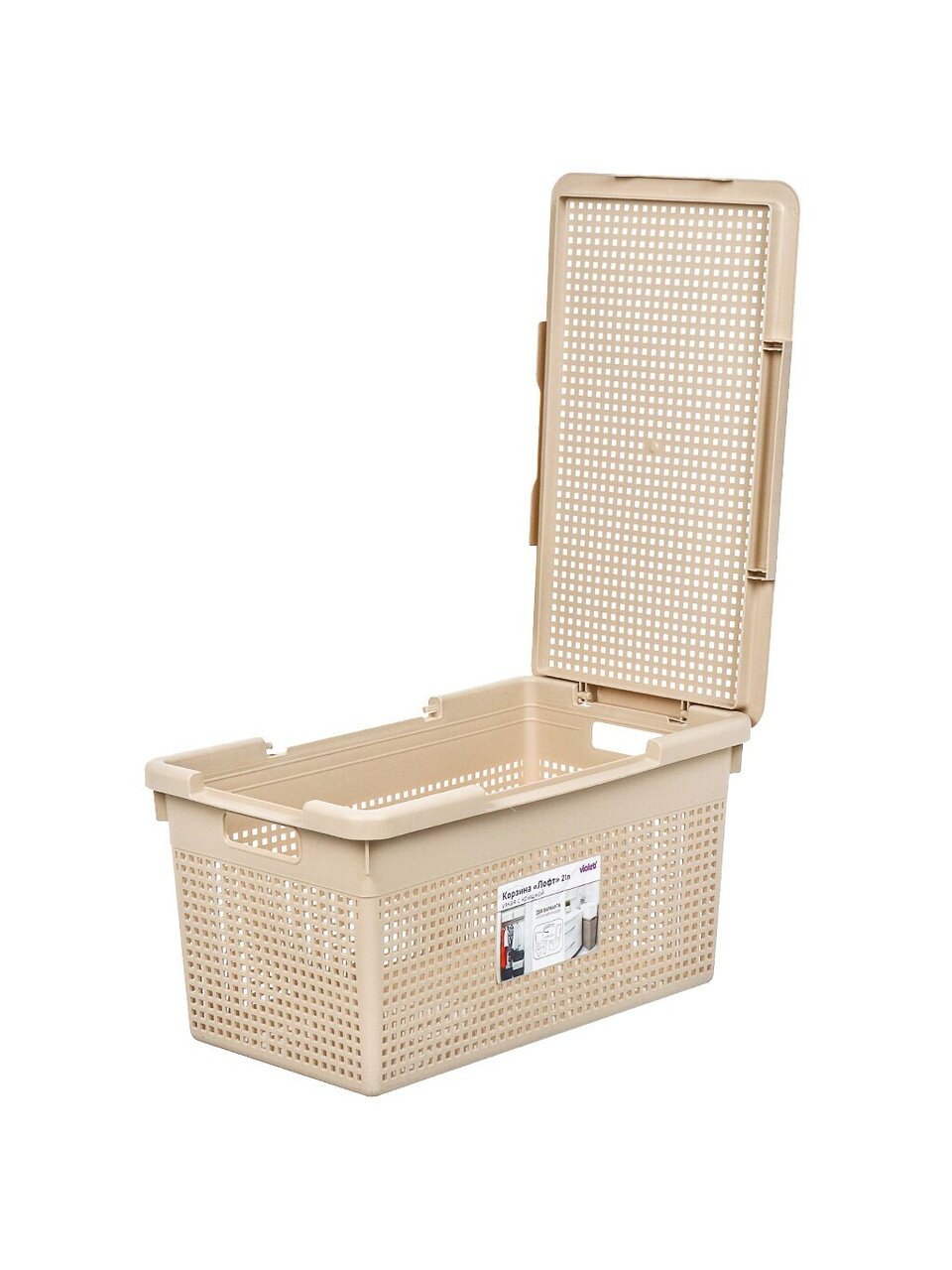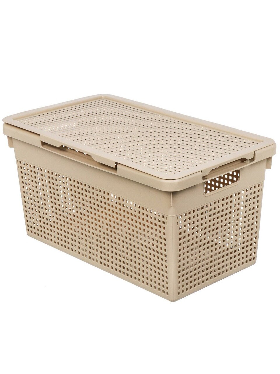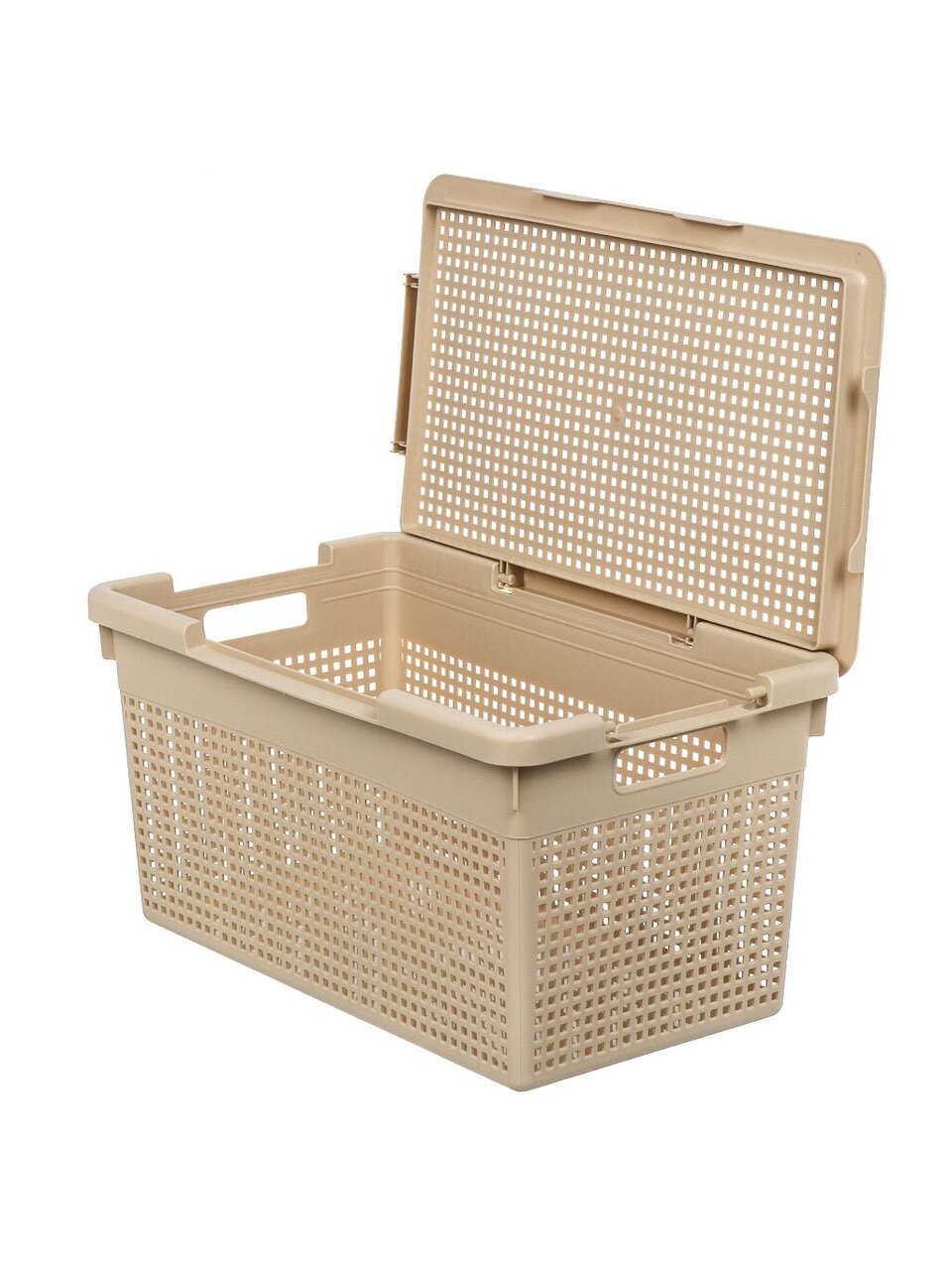 - Размеры ящика и устойчивая крышка позволяют поставить несколько корзин одну на другую.