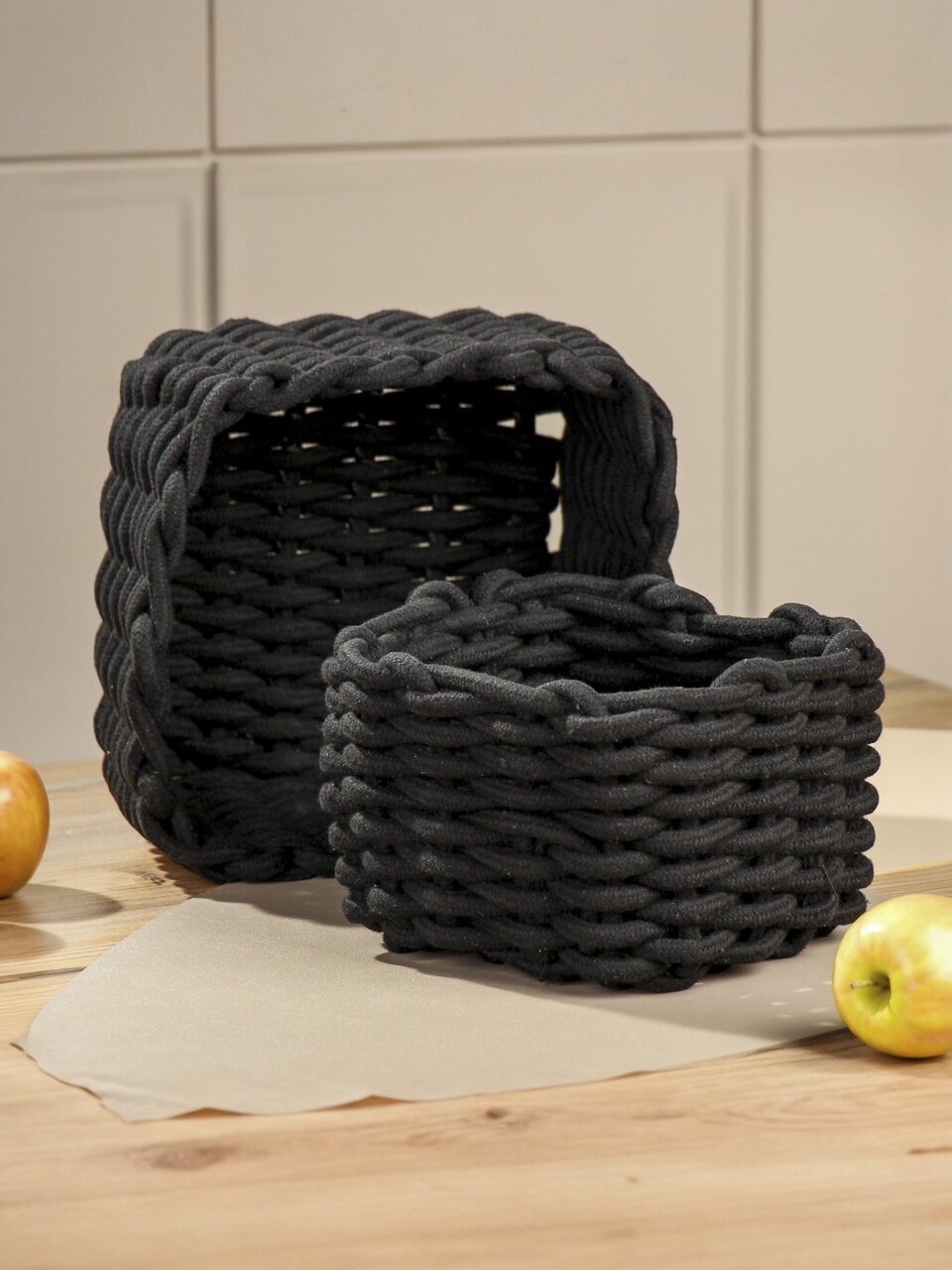Покупка этого набора корзин принесет вам множество преимуществ. Они помогут оптимизировать пространство в вашем доме, создавая порядок и уют. Черный цвет и плетеная структура добавят стильный акцент в интерьер, а универсальность использования позволит хранить как мелкие, так и более крупные предметы. Эти корзины станут не только практичным, но и эстетичным решением для вашего дома.