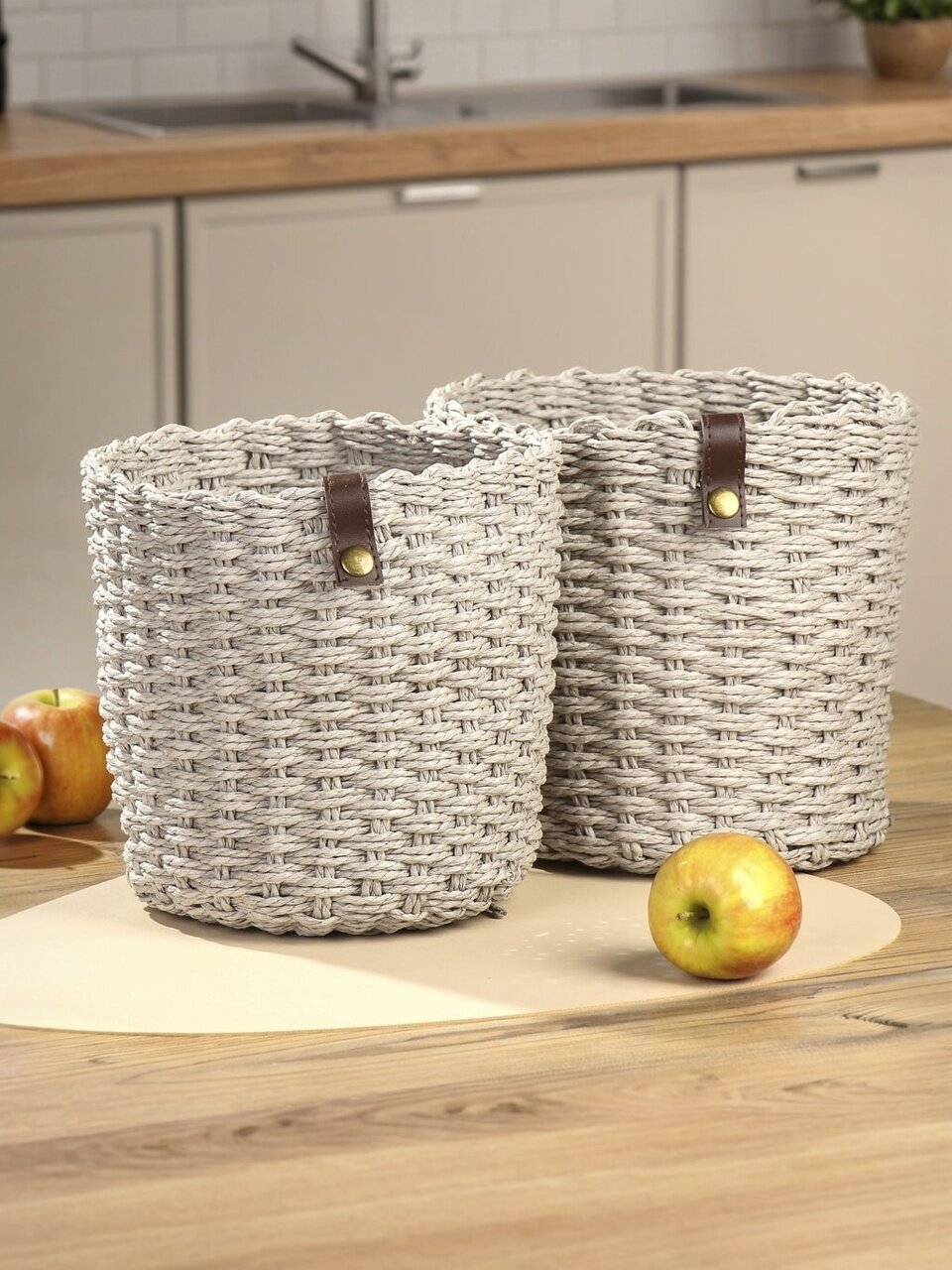 Ищете способ украсить интерьер и одновременно решить вопрос хранения? Плетеные корзины – это то, что вам нужно! Они не только помогут поддерживать порядок, но и станут стильным элементом декора. Круглая форма и универсальный серый цвет делают их идеальными для любого интерьера, будь то современный стиль или классика.