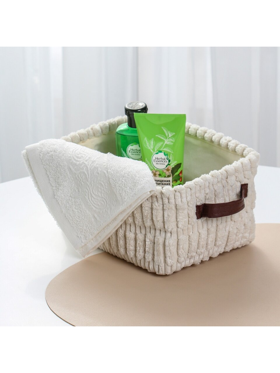 - Эстетика и универсальность: белая фланелевая корзина гармонично вписывается в любой интерьер и подходит для хранения мелочей, рукоделия, косметики.