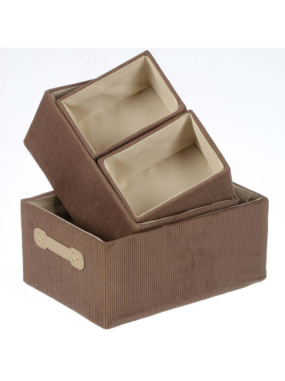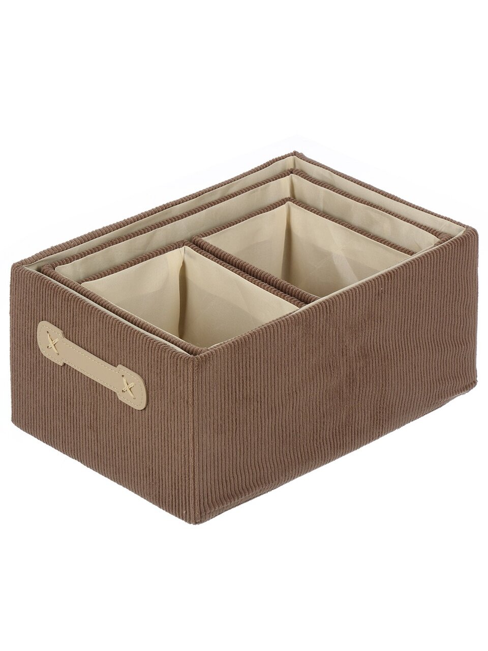 Набор корзин из вельвета — оптимальный выбор для тех, кто ищет недорогой и практичный способ организовать хранение вещей. Благодаря разным размерам, их легко использовать для хранения игрушек, аксессуаров, рукоделия или сезонных вещей. Вельветовая фактура не только приятна на ощупь, но и придаёт интерьеру уют, а коричневый цвет гармонирует с большинством современных стилей.