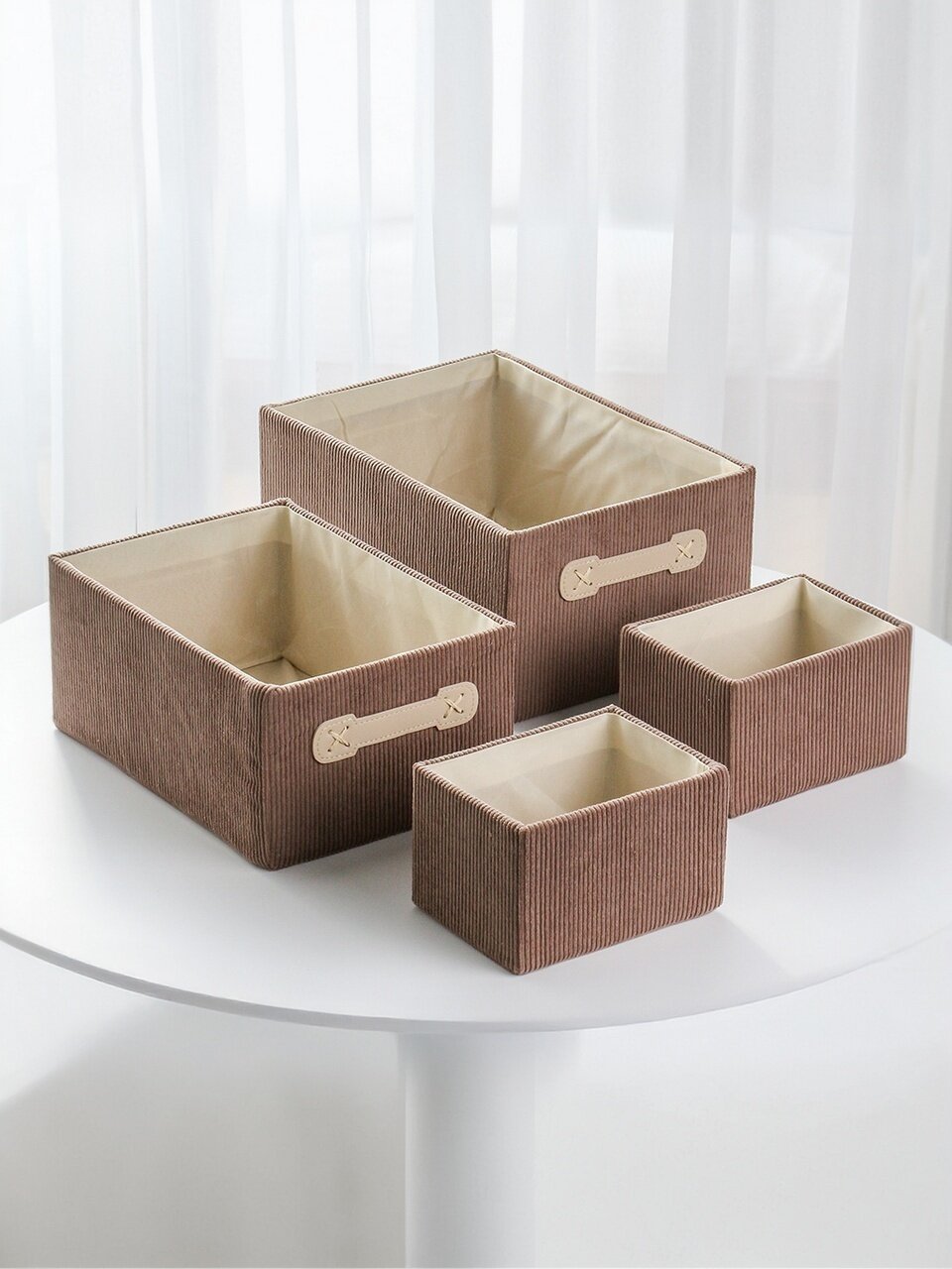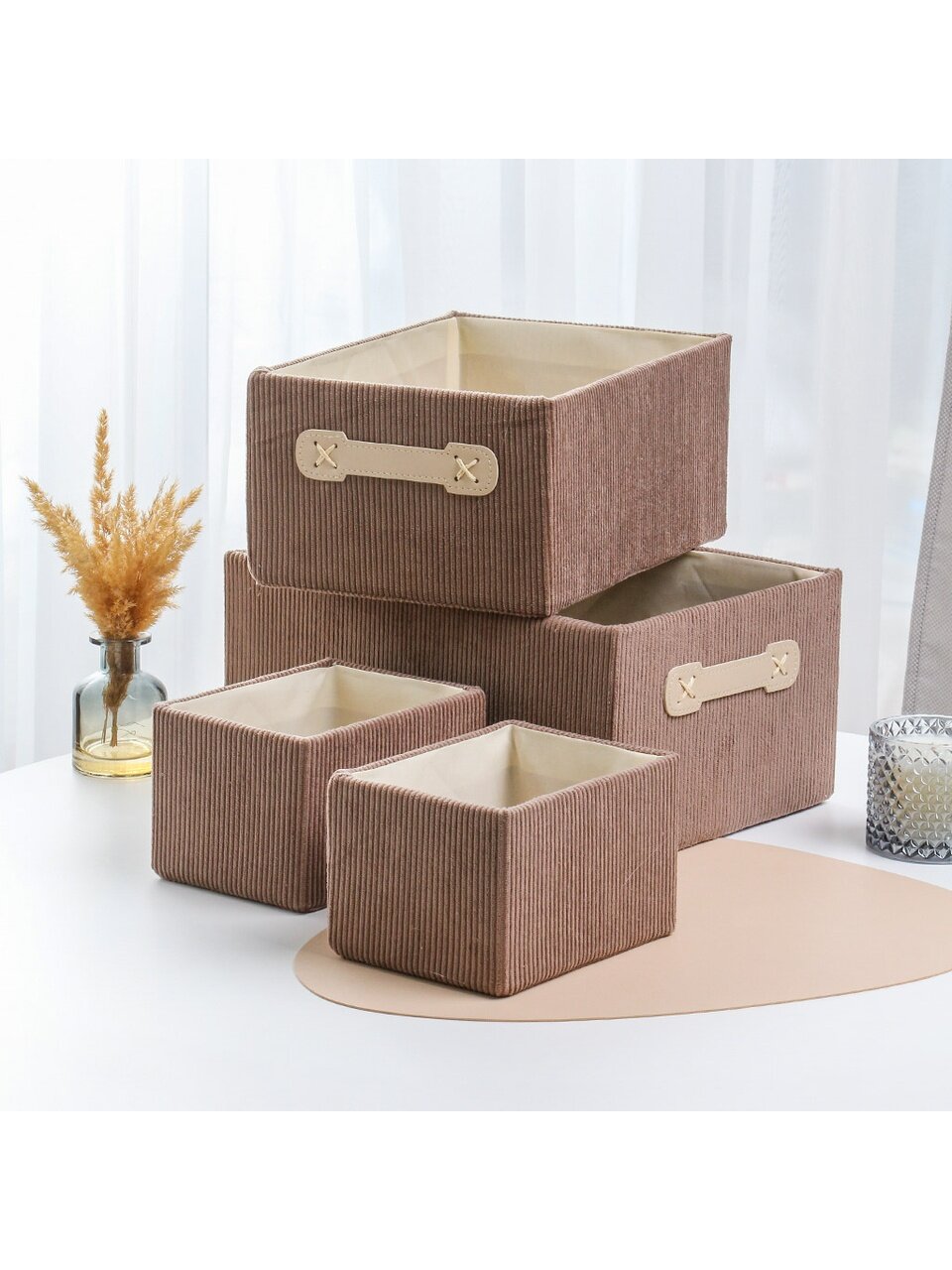 Набор из 4 вельветовых корзин для хранения: стильный порядок в доме и на даче, универсальные размеры, складная конструкция и ручки для удобства.