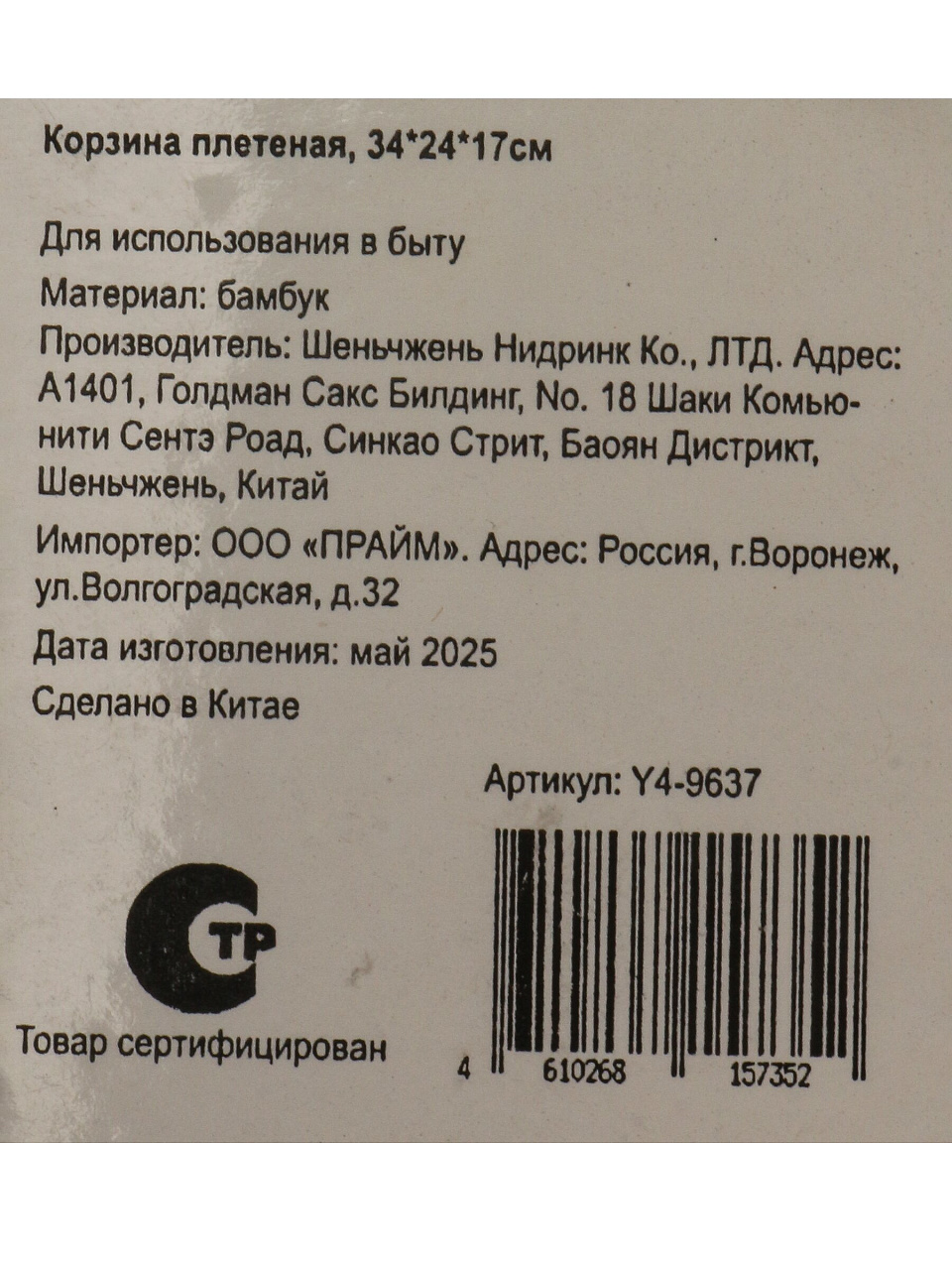 Корзина плетеная, 34*24*17CM, Y4-9637