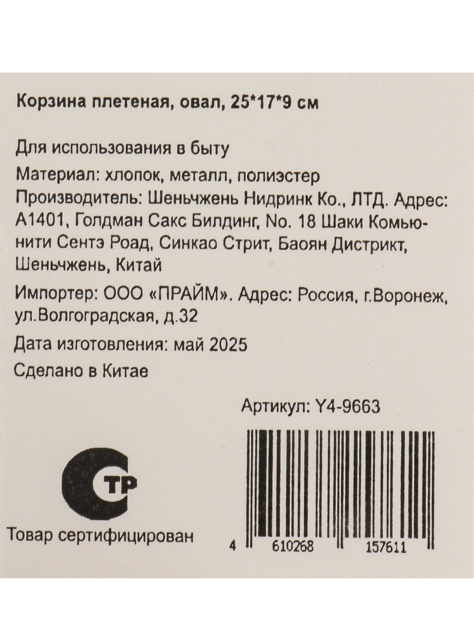 Корзина плетеная, овал , 25*17*9 см, Y4-9663