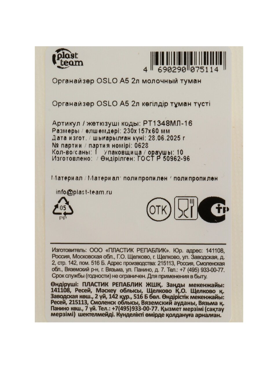 Корзина 2 л Plast team Oslo — компактное решение для хранения дома и на даче: оптимальный размер, стиль «молочный туман», пластик без запаха, цена без переплат.