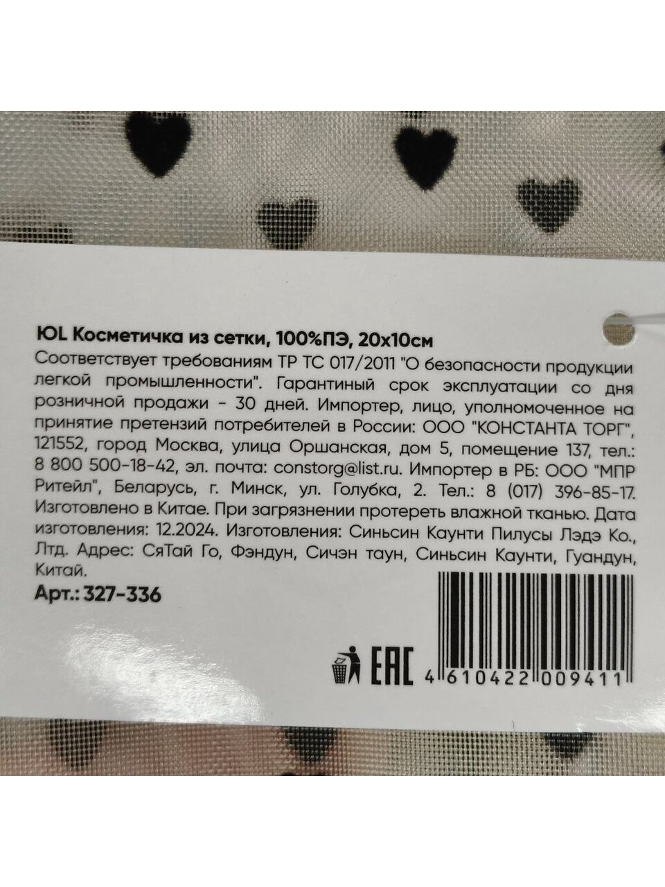 Вы можете приобрести «Косметичка 20х10 см, сетка, 100% полиэстер, ЮниLook, 327-336, прямоугольная, застежка молния, в ассортименте» и другие товары в нашем интернет-магазине в Железногорске по низким ценам и с бесплатным самовывозом.