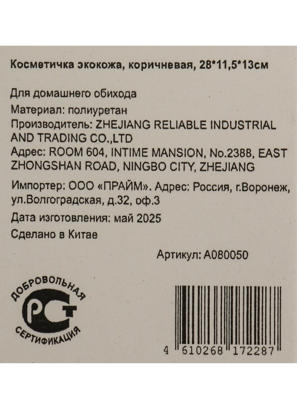 Косметичка экокожа, коричневая, 28Х11.5Х13см, A080050