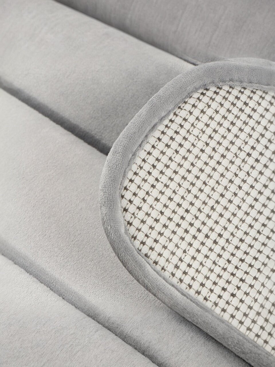 Велюровая поверхность не только приятна на ощупь, но и проста в уходе — коврики легко очищаются, быстро сохнут и сохраняют привлекательный внешний вид даже при регулярном использовании. Стильный светло-серый оттенок визуально расширяет пространство, делает помещение светлее и аккуратнее, а также помогает поддерживать ощущение свежести и чистоты.