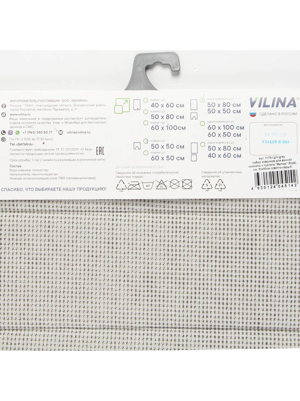 Вы можете приобрести «Набор ковриков для ванной и туалета, антискользящий, 2 шт, 0.5х0.8, 0.5х0.5 м, велюр, светло-серый, Вилина, 7173» и другие товары в нашем интернет-магазине в Краснодаре по низким ценам и с бесплатным самовывозом.
