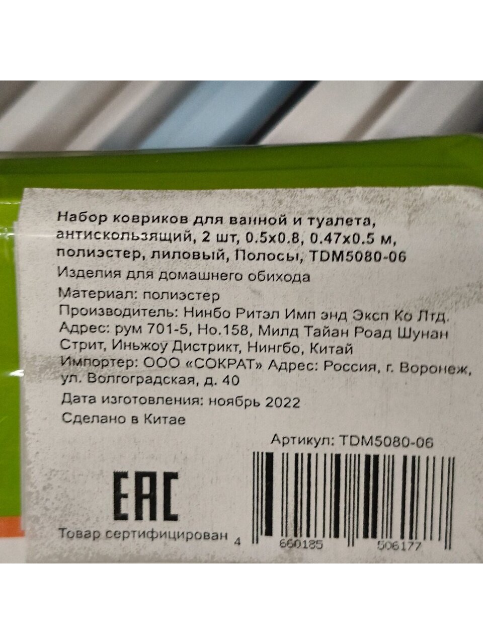 Вы можете приобрести «Набор ковриков для ванной и туалета, антискользящий, 2 шт, 0.5х0.8, 0.47х0.5 м, полиэстер, лиловый, Полосы, TDM5080-06» и другие товары в нашем интернет-магазине в Тамбове по низким ценам и с бесплатным самовывозом.
