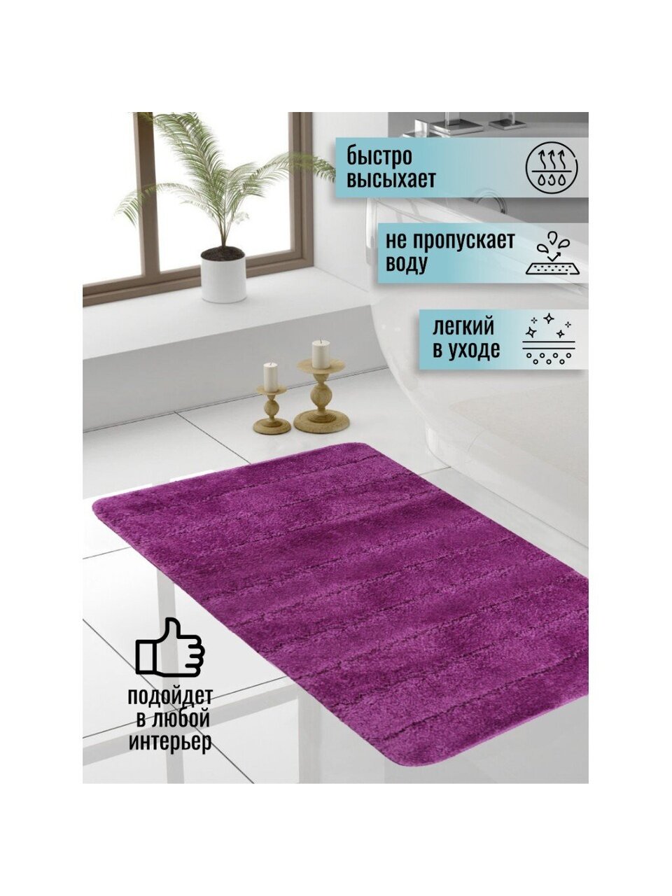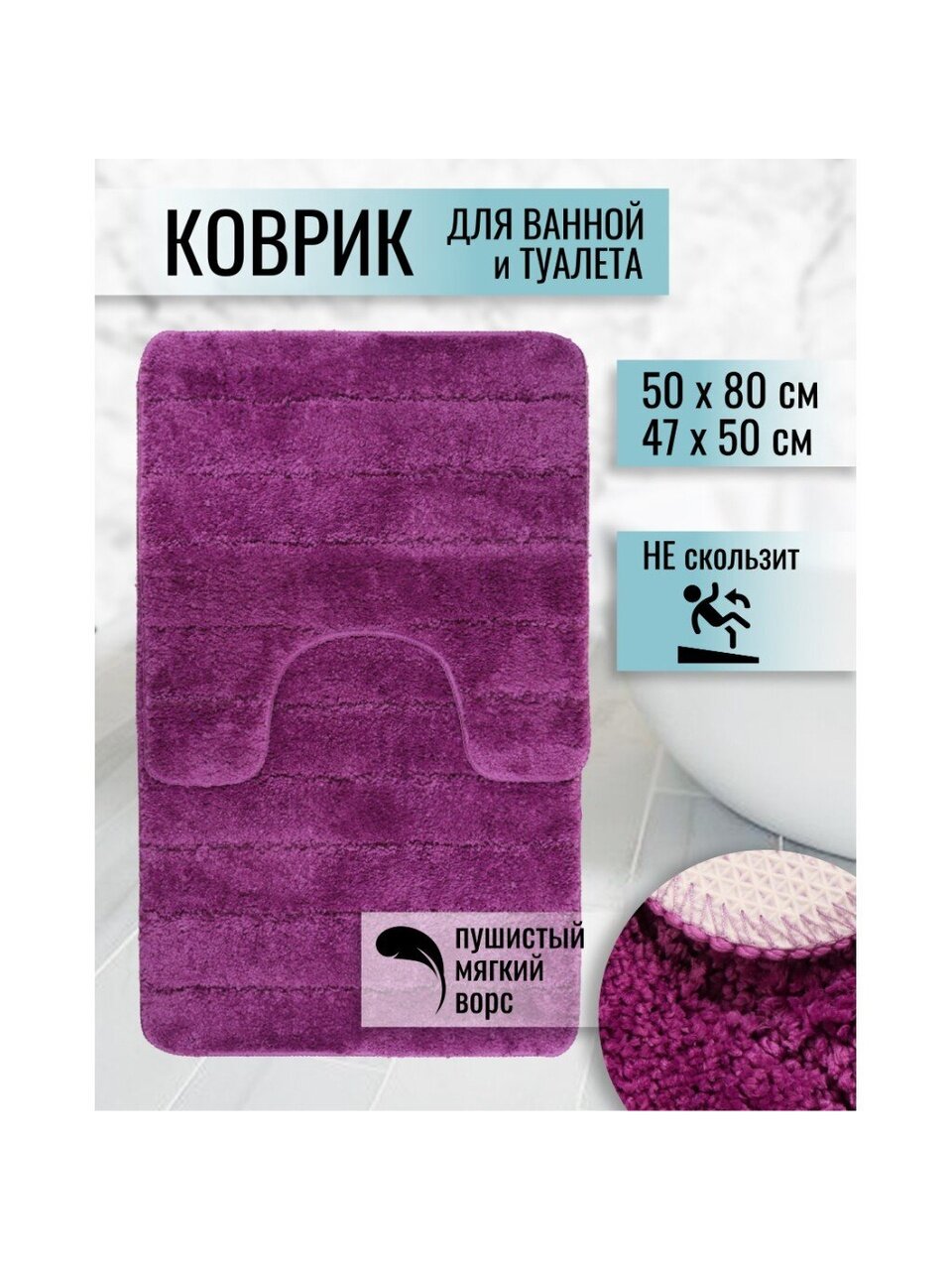 Коврики для ванной и туалета являются аксессуаром, обеспечивающим комфортное нахождение в ванной комнате с любым напольным покрытием. Набор состоит из ковриков для ванной комнаты и туалета (с вырезом под ножку унитаза). Невысокий бархатистый ворс очень приятен на ощупь. Коврики дарят ногам ощущение мягкости и тепла, как будто вы ступаете по песчаному морскому берегу. Материал изготовления — практичный, износостойкий, легкий в уходе полиэстер. Обработка краев оверлоком придает моделям законченный вид и продлевает срок их службы. Специальная подложка предотвращает скольжение изделий на гладком полу.